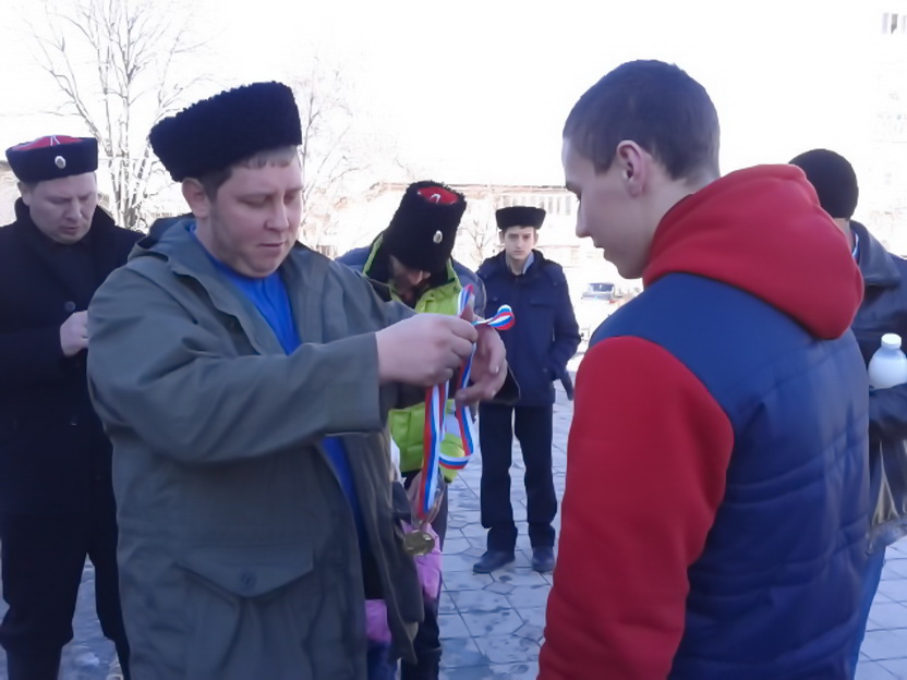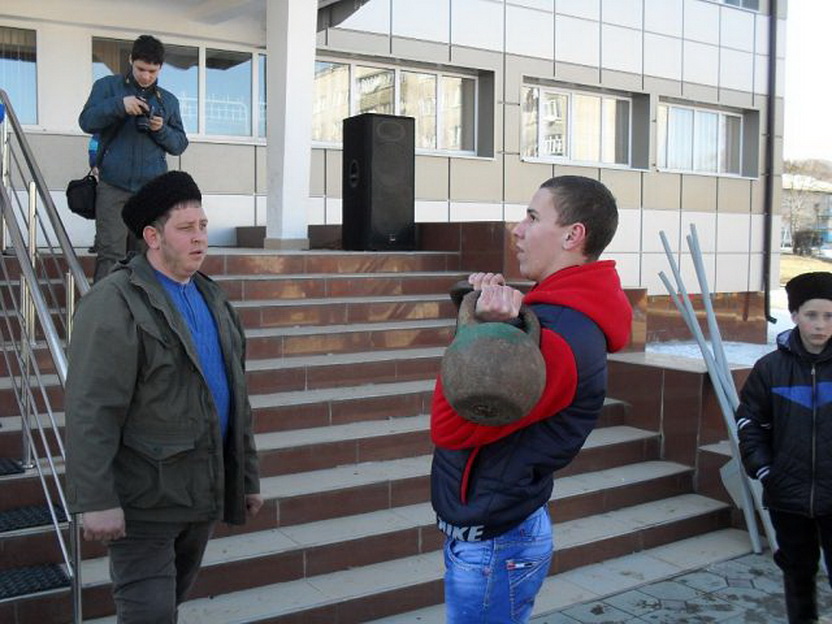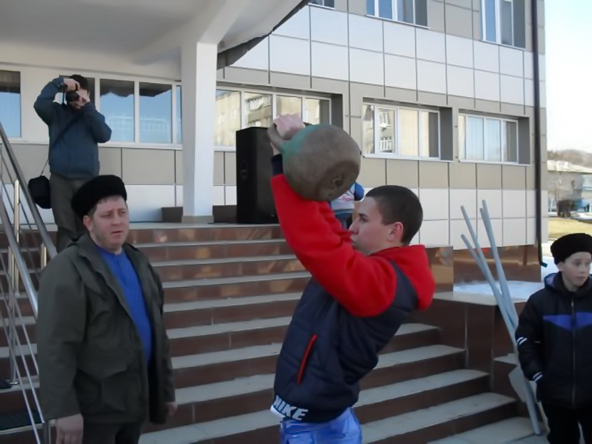 По окончании концерта казаки Урупского районного казачьего общества провели состязания и конкурсы, в числе которых «Бой мешками на бревне» среди мальчиков и девочек, перетягивание каната, толчок одновременно двух гирь вес каждой 24 кг, общий вес 48 кг.