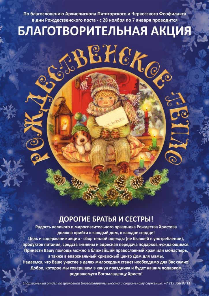 По благословению Архиепископа Пятигорского и Черкесского Феофилакта в дни Рождественского поста — с 28 ноября по 7 января проводится благотворительная акция «Рождественское тепло». Читать далее
