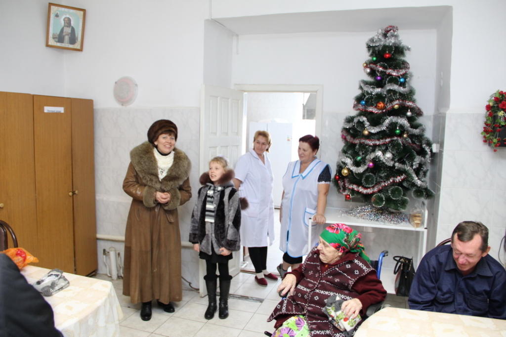 Первыми теплые подарки к празднику Рождества получили жильцы Зеленчукского районного специального дома-интерната для престарелых и инвалидов. Благочинный Южного Карачаево-Черкесского церковного округа протоиерей Евгений Субтельный и настоятель Покровского храма станицы Кардоникской иерей Димитрий Бураков вручили старикам теплые шерстяные носки ручной вязки. Перед жильцами дома-интерната выступили певчие Петропавловского храма станицы Зеленчукской. Они пропели Рождественские колядки.