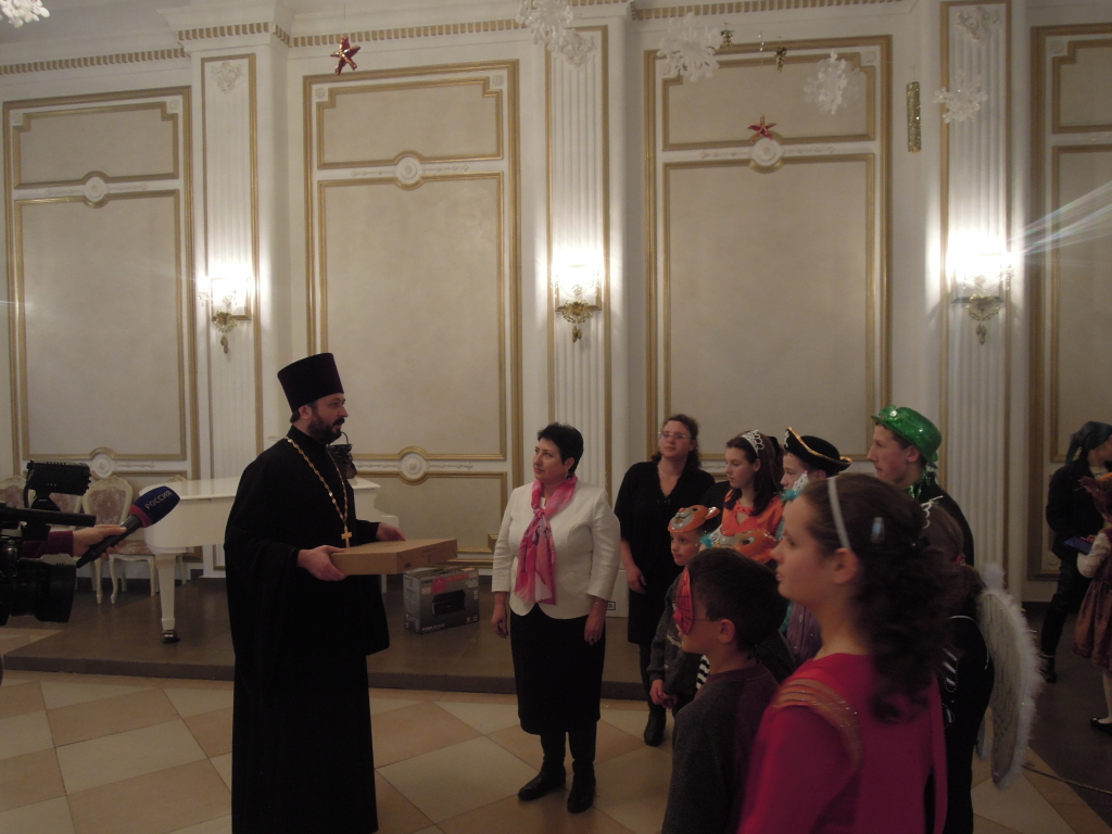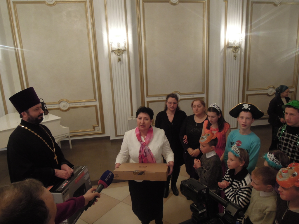 По окончании представления, благочинный храмов Южного Карачаево-Черкесского церковного округа протоиерей Евгений Субтельный вручил директору школы-интерната Л. П. Заверза ноутбук и цветной принтер, приобретенные для нужд школы в рамках благотворительной акции Пятигорской епархии «Рождественское тепло».