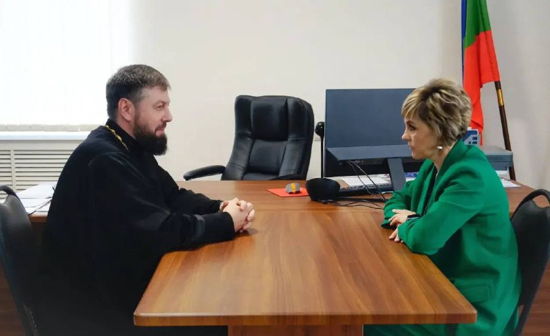 Благочинный Православных церквей Южного Карачаево-Черкесского округа иерей Александр Якушев встретился с главой администрации Зеленчукского района Мариной Брыкиной для обсуждения вопросов укрепления традиционных ценностей, включая семейные, духовно-нравственное и патриотическое воспитание молодёжи, а также содействие межнациональному согласию и развитие сотрудничества между местными властями и духовенством в социальной сфере.