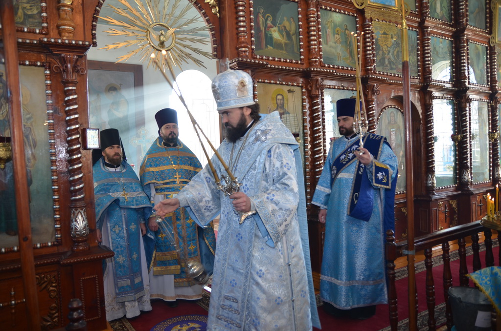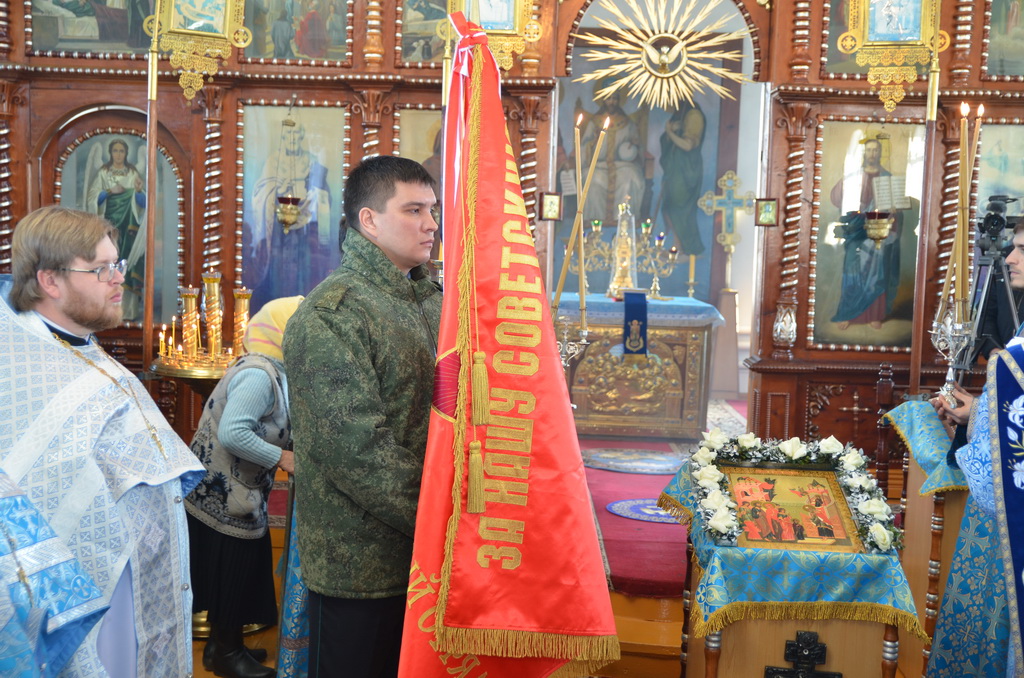 Во время богослужения архиепископ Феофилакт совершил поминовение погибших воинов-пограничников, а после сугубой ектении вознес молитву о мире на Украине и в Сирии.