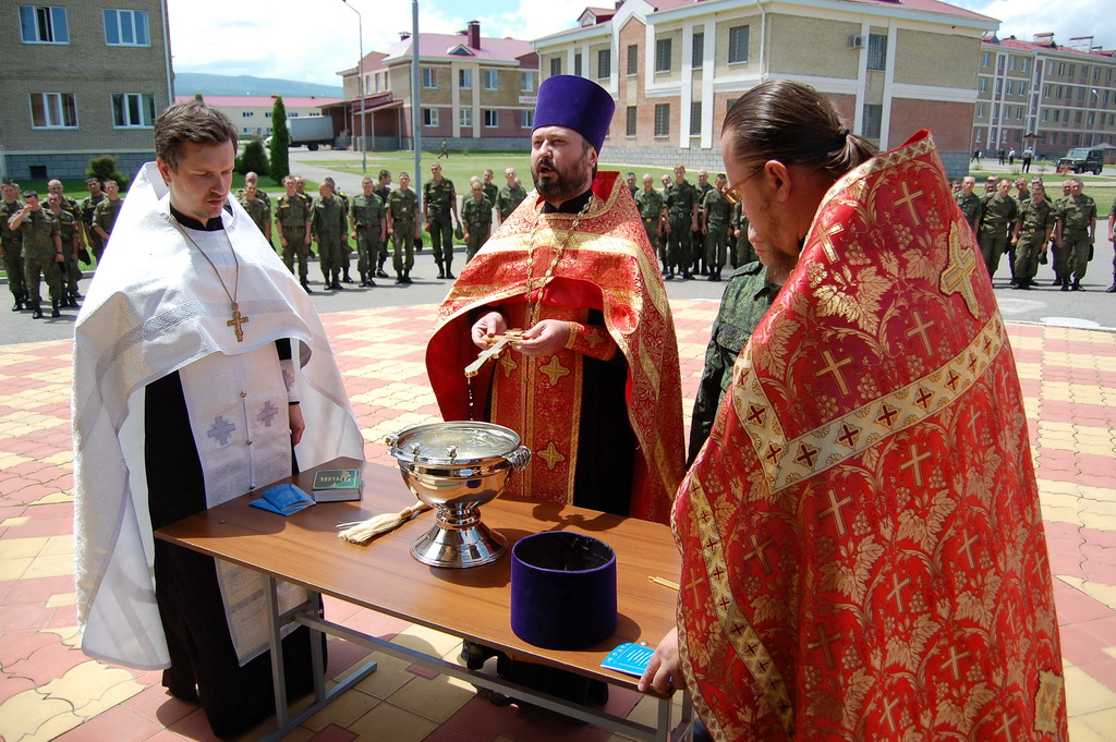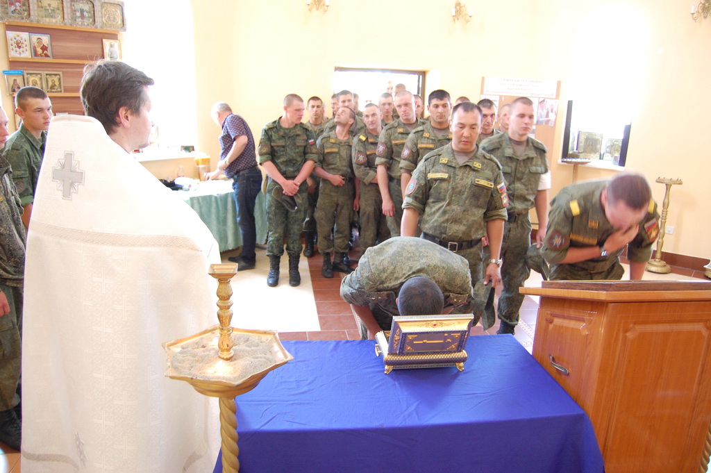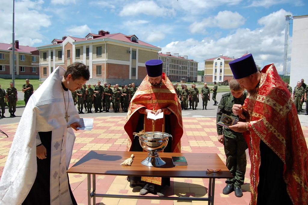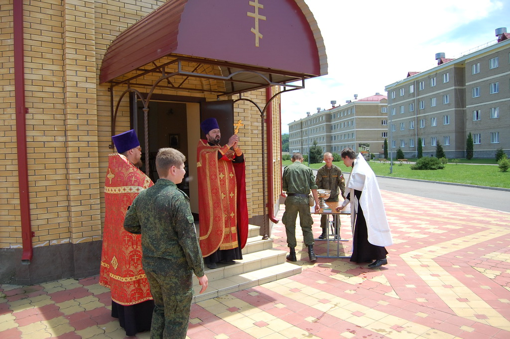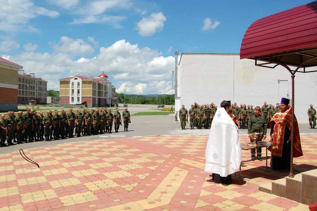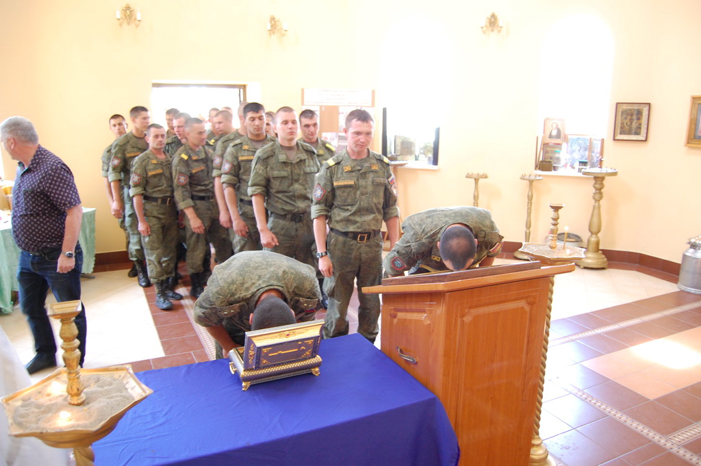 По окончании молебна солдаты и офицеры приложились к святым мощам, которые будут находиться на территории воинского подразделения до 11-30 19 июня, после чего Крестный ход проследует в станицу Преградную.