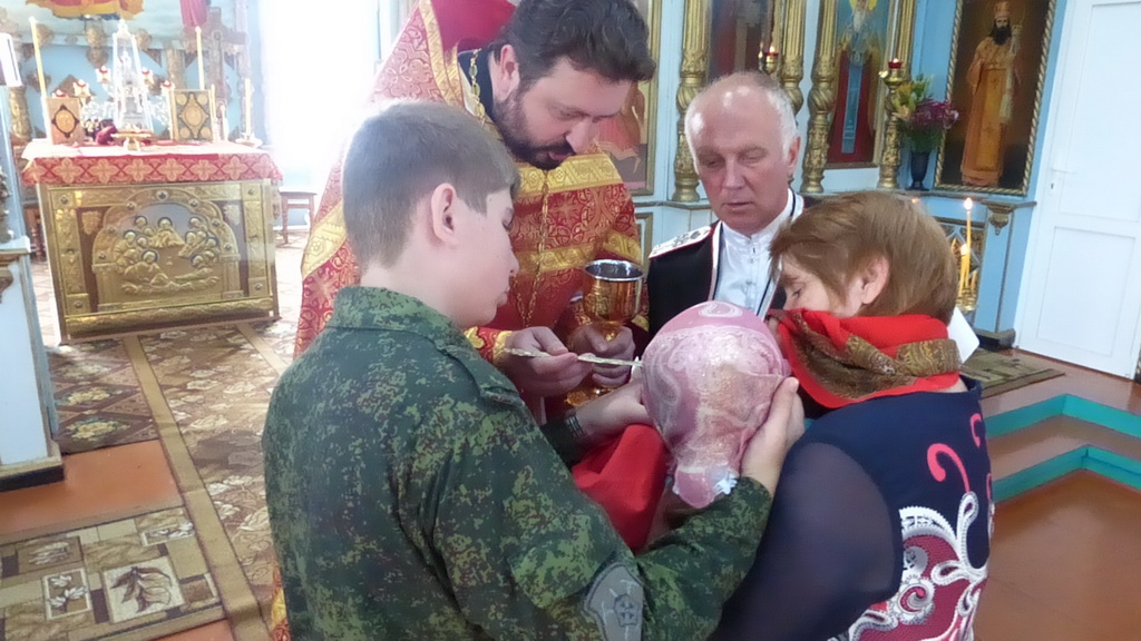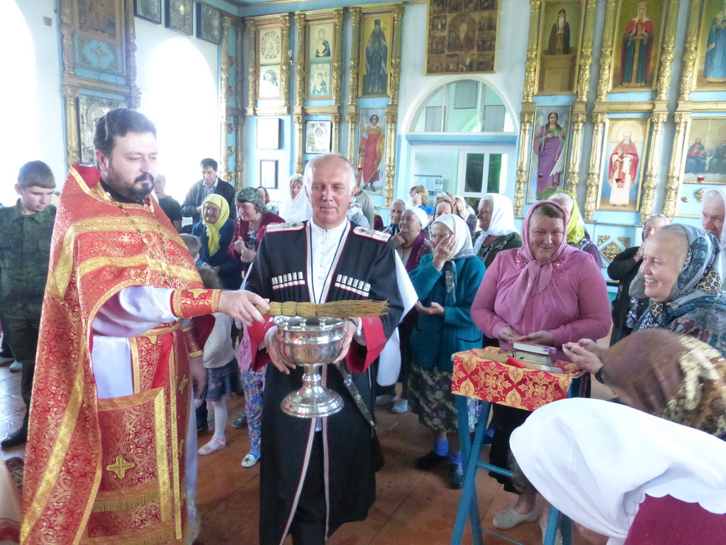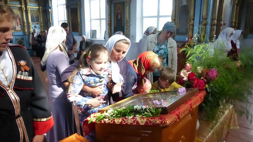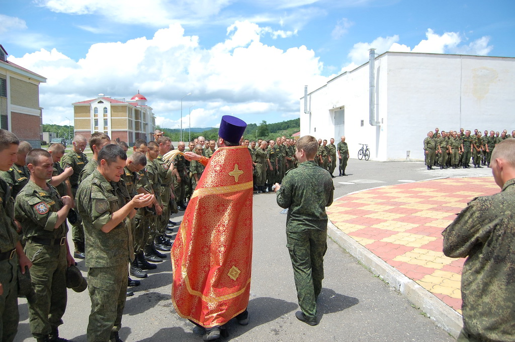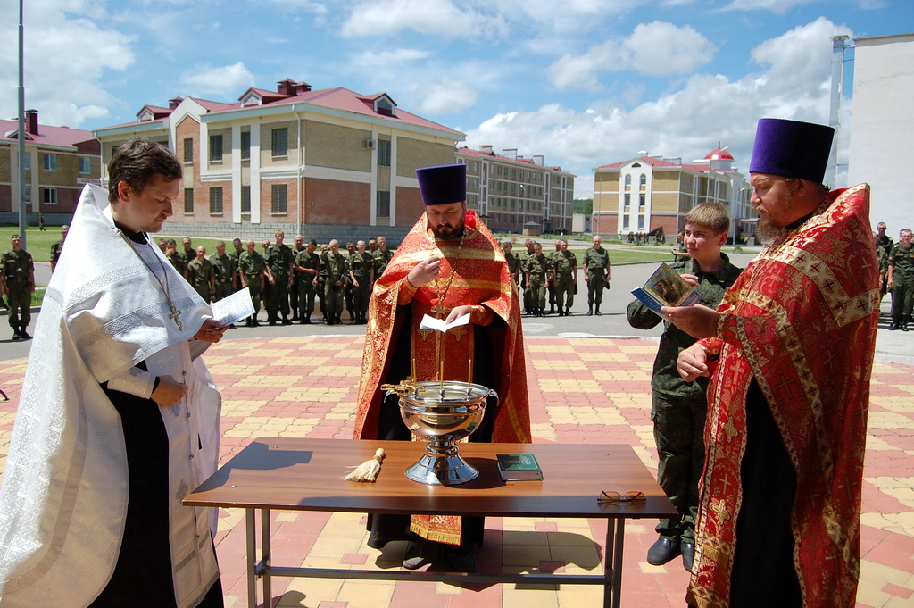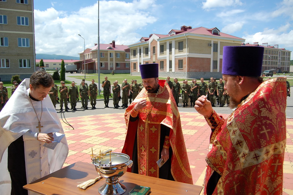 По окончании молебна солдаты и офицеры приложились к святым мощам, которые будут находиться на территории воинского подразделения до 11-30 19 июня, после чего Крестный ход проследует в станицу Преградную.