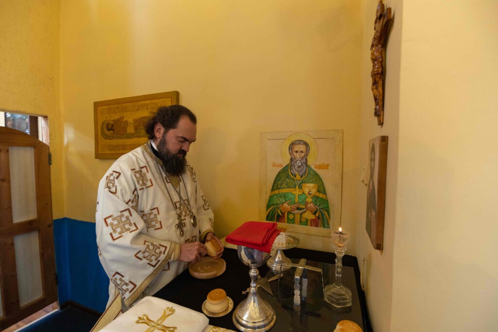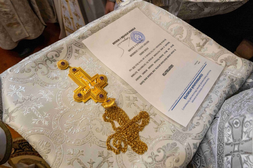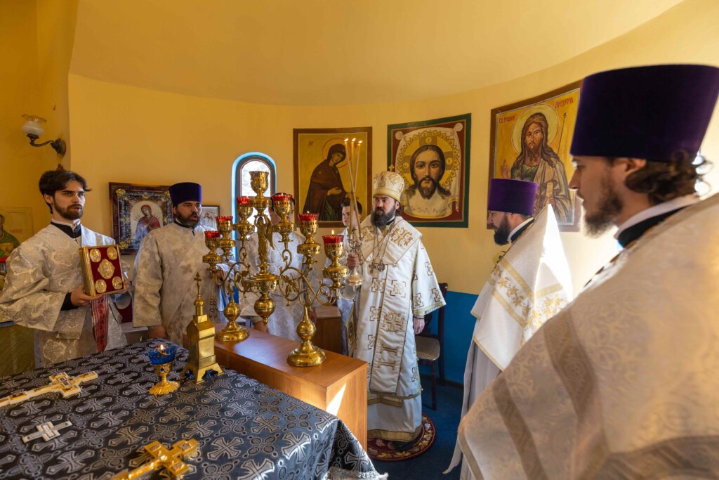 Во время богослужения архиепископ Феофилакт наградил иеромонаха Александра новой богослужебной наградой. По его ходатайству Святейший Патриарх Московский и всея Руси Кирилл присвоил ему право носить крест с украшениями.