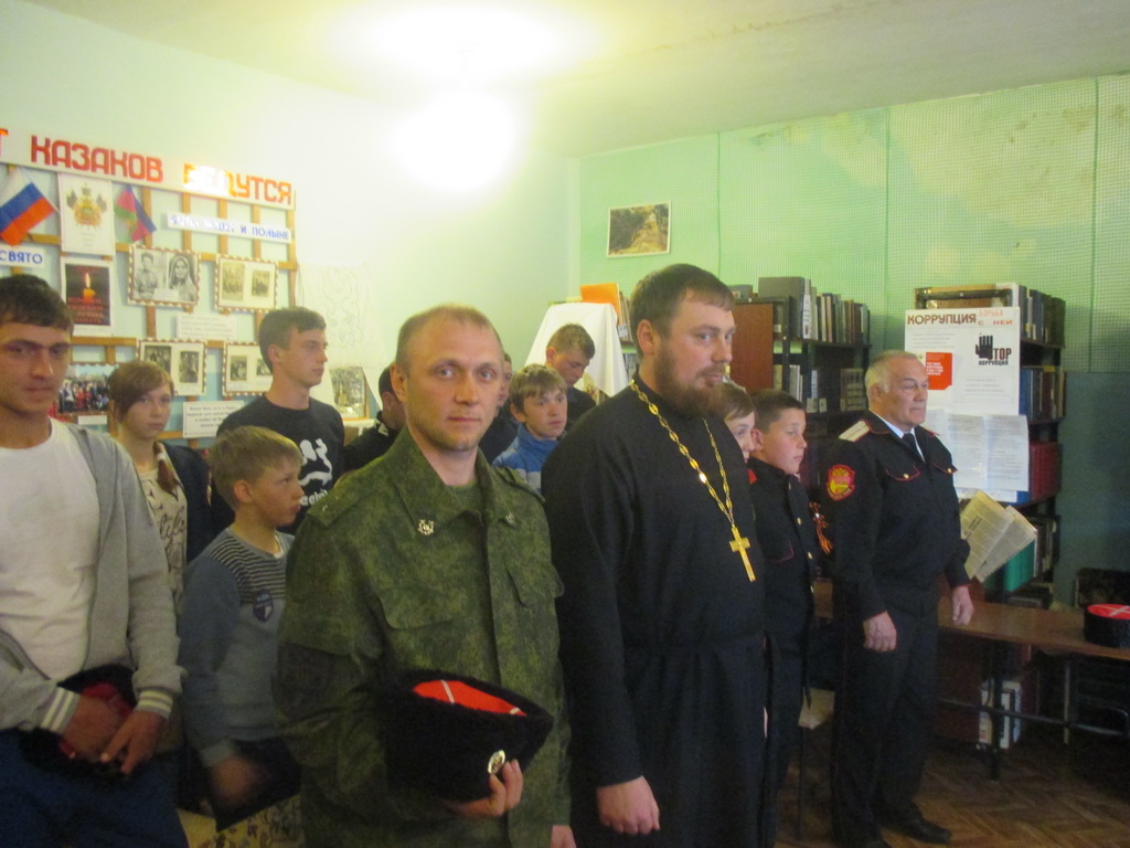 21 апреля 2016 в рамках клуба казачьей молодежи «Любо!» в читальном зале Медногорской библиотеки состоялся День памяти «МЫ ЕСТЬ, ПОТОМУ ЧТО ОНИ БЫЛИ…», посвященный Дню политических репрессий казачества, на котором присутствовали атаманы Урупского РКО Гежин В. Е., станицы Преградной Кондратов А. А., поселка Медногорский Таранов Р. Г., помощник благочинного Южного Карачаево-Черкесского округа по работе с казачеством иерей Алексий Соловьев, казачата, почетные казаки Урупского РКО.
