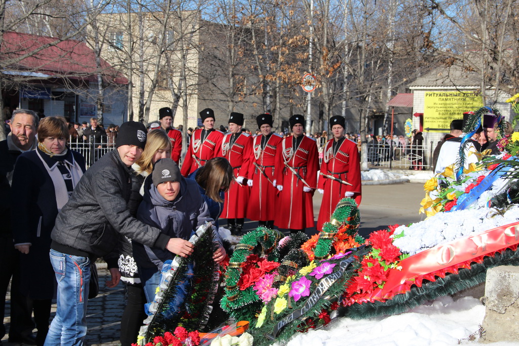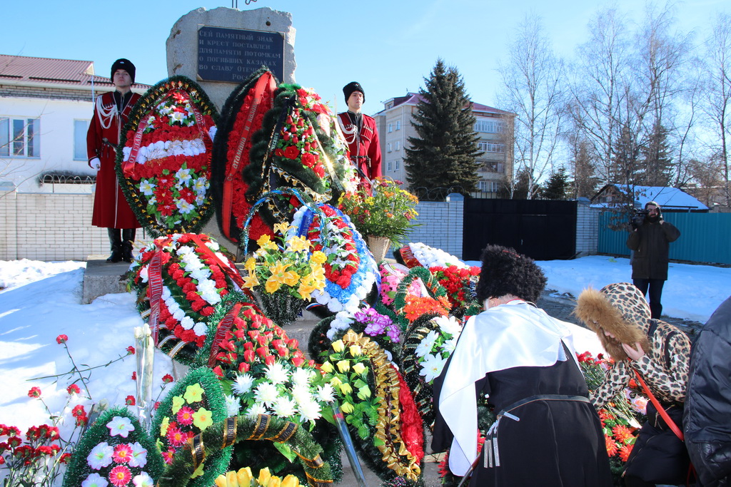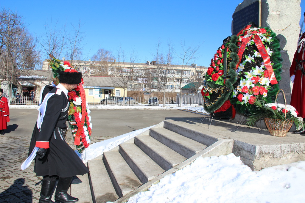 По окончании траурного митинга жители и гости станицы Зеленчукской прошли к памятнику репрессированным казакам, где состоялось возложение цветов.