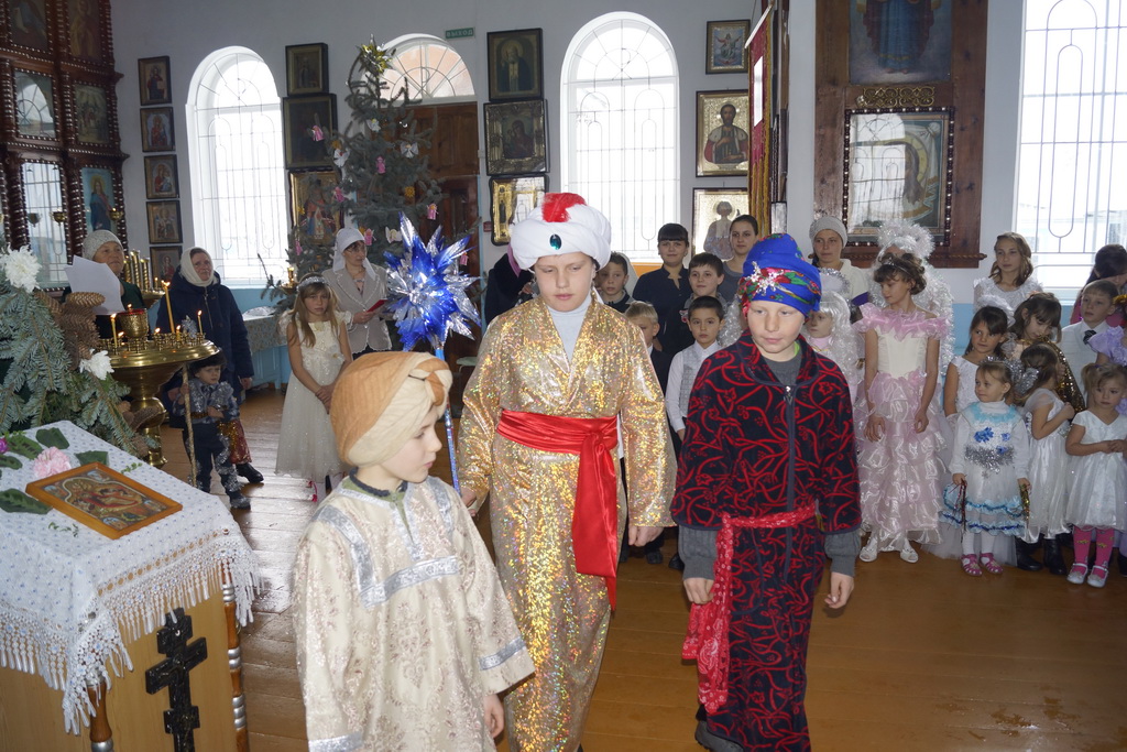 Как и каждый год учащиеся воскресной группы «Добротолюбие» подготовили и представили прихожанам храма, своим родителям, бабушкам и дедушкам инсценировку на Рождественскую тему.