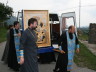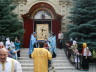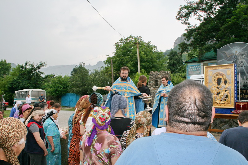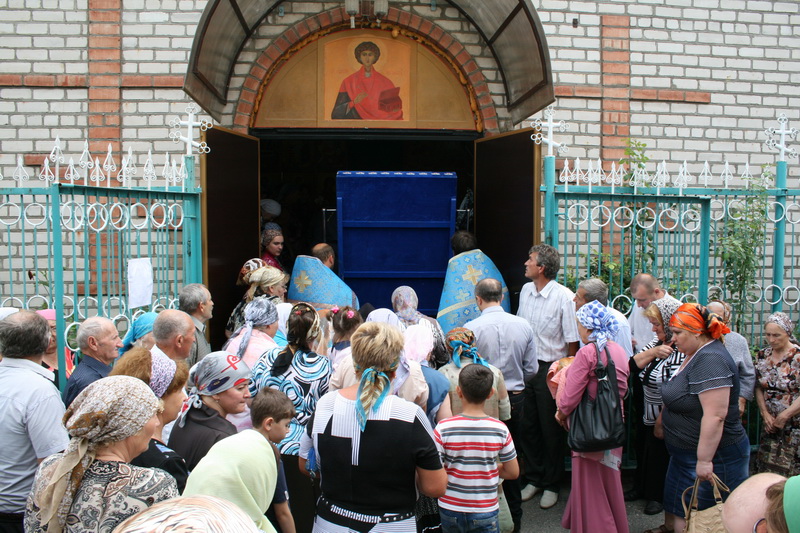 После совершения молебна святыни направились в Свято-Пантелеимоновский храм города Карачаевска. Храм очень небольшой. Верующие, пришедшие поклониться святыням,по нескольку человек заходили с улицы, прикладывались к святыням и снова выходили, чтобы дать возможность всем пришедшим поклониться святыням.