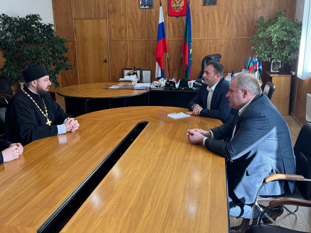 Состоялась встреча главы администрации Урупского района Михаила Федоровича Зайцева с духовенством района. Благочинный Православных церквей Южного Карачаево-Черкесского округа, иерей Александр Якушев, представил нового настоятеля Свято-Тихоновского храма села Курджиново — иерея Георгия Чайковского. В ходе встречи обсуждались актуальные вопросы деятельности православных общин в районе. Основное внимание было уделено планированию совместных мероприятий. Участники договорились о сотрудничестве в организации районных праздников и памятных событий. Особое внимание было уделено проектам, направленным на сохранение исторической памяти и духовно-нравственное воспитание молодого поколения.