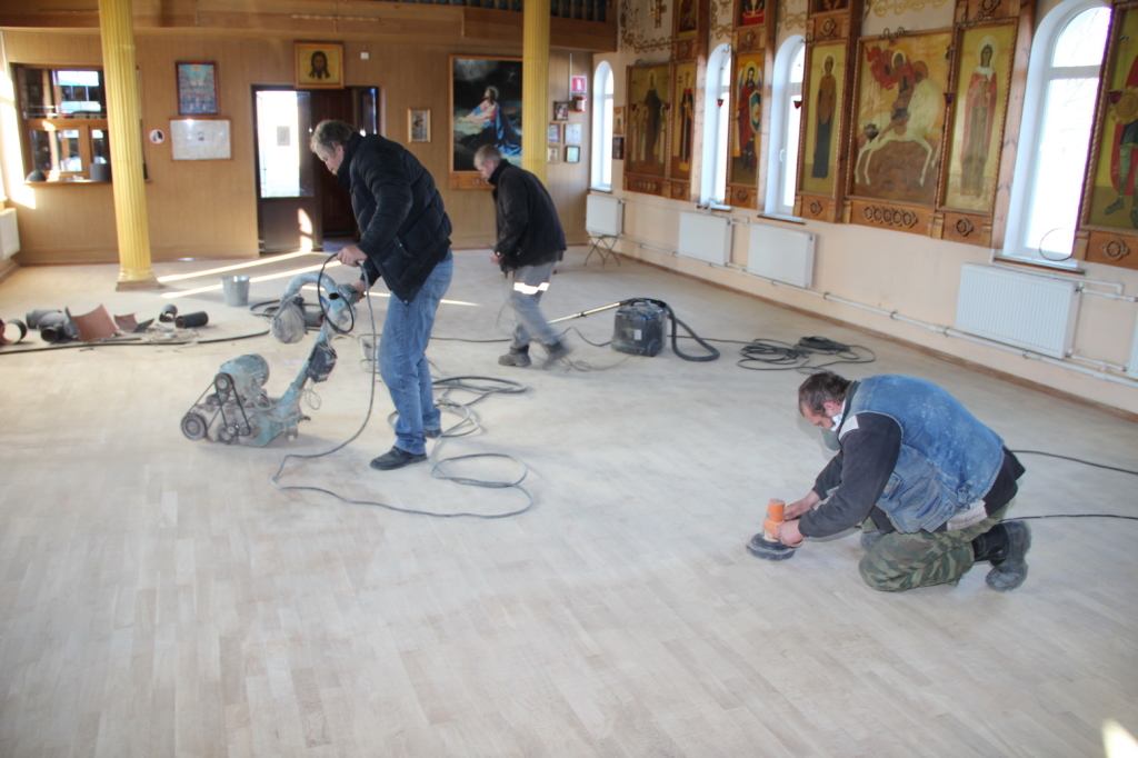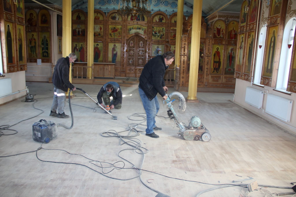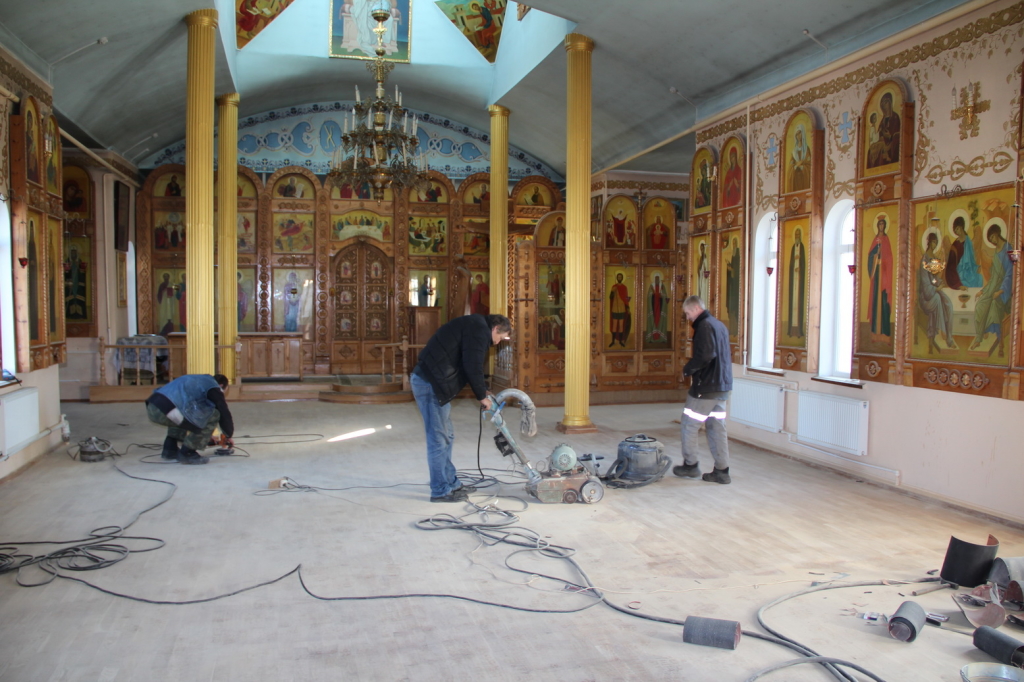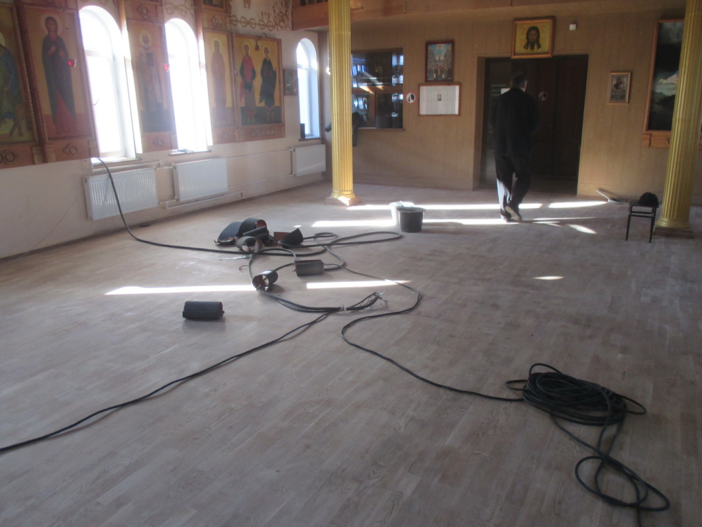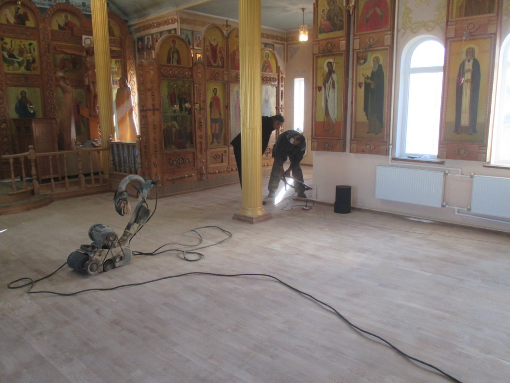 В Кирилломефодиевском храме к празднику Рождества Христова закончили ремонт полов. В храме постелен настоящий паркет, и, несмотря на красоту, такое покрытие требует тщательного ухода.