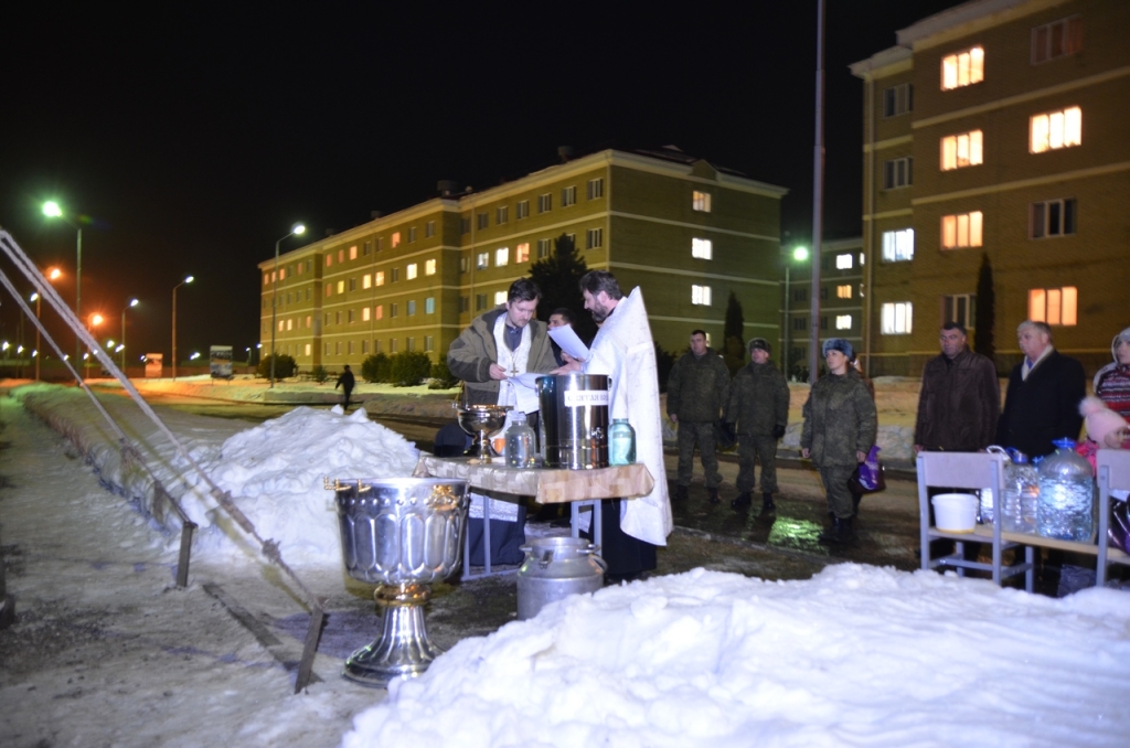 По традиции Великое освящение воды совершили для военнослужащих 34-й отдельной мотострелковой бригады «Горная». Для желающих окунуться в расположении бригады была установлена специальная палатка с бассейном. Освящение воды в бригаде совершили благочинный храмов Южного Карачаево-Черкесского церковного округа протоиерей Евгений Субтельный и помощник командира 34-й бригады по работе с верующими военнослужащими иерей Иоанн Афонин.