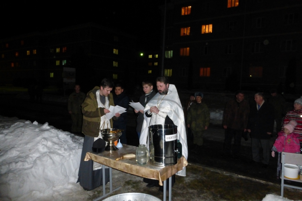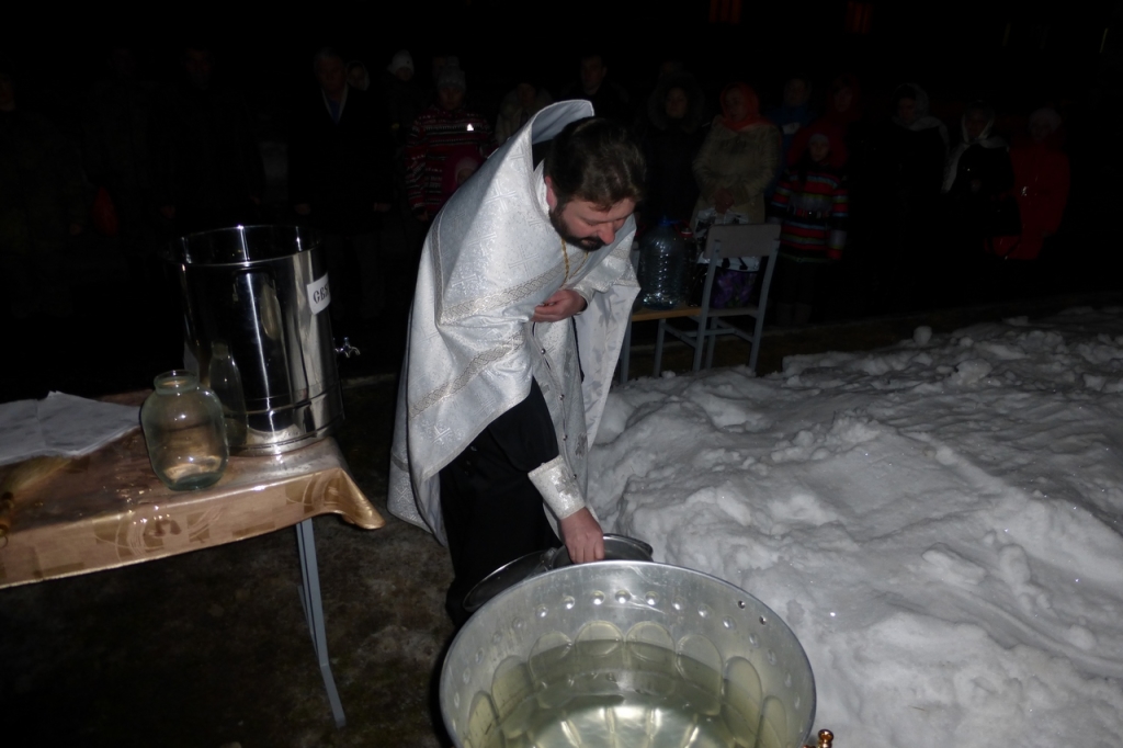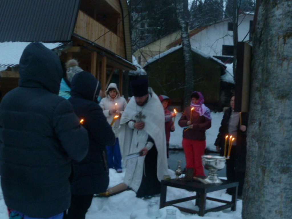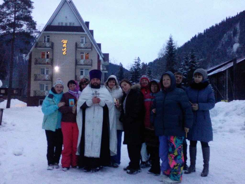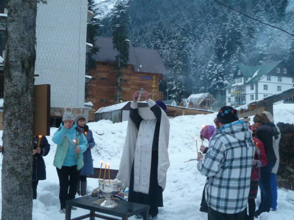 В Крещенский сочельник чин Великого освящения воды совершили в общине в память священномученика Вениамина митрополита Петроградского. Настоятель общины иерей Сергий Фоменко освятил воду для жителей и гостей поселка Домбай.