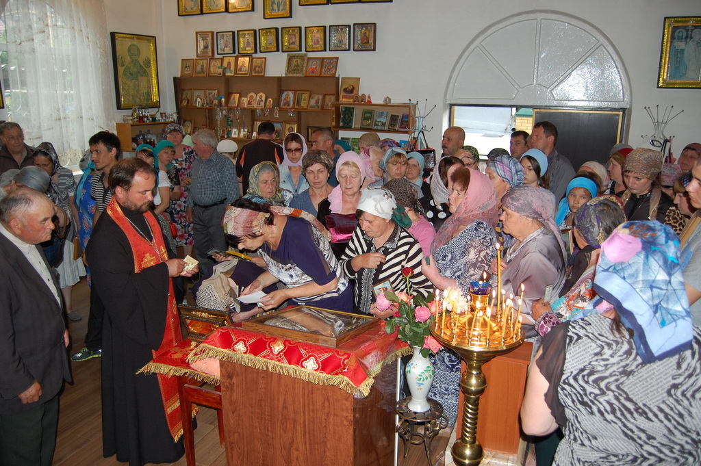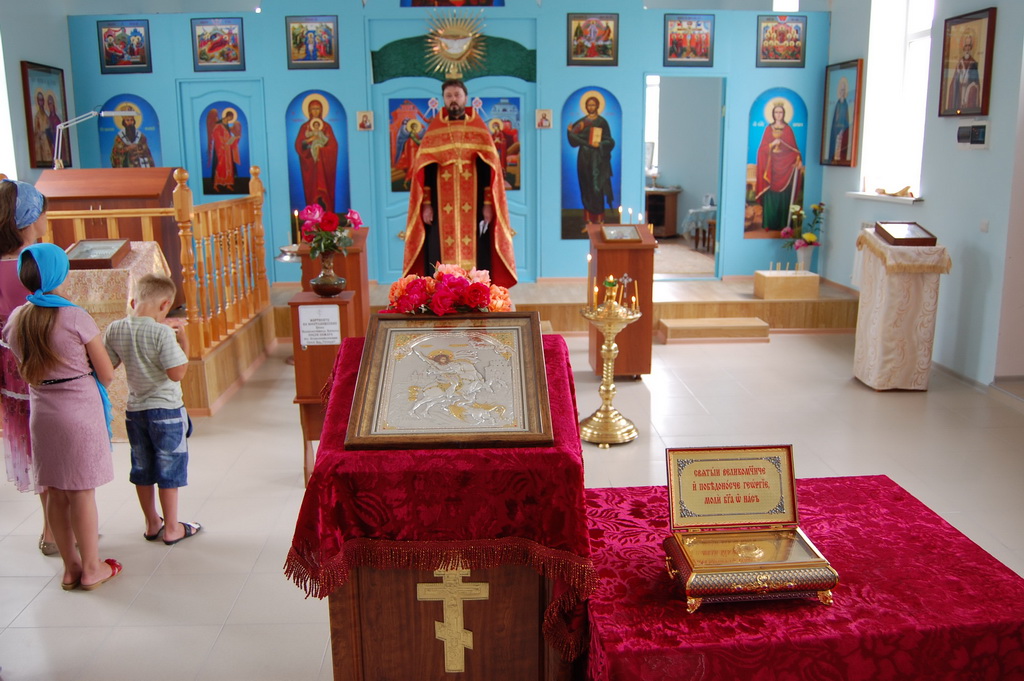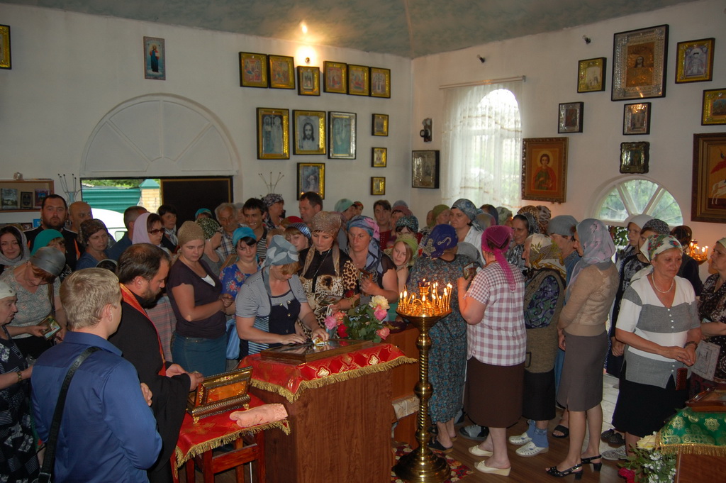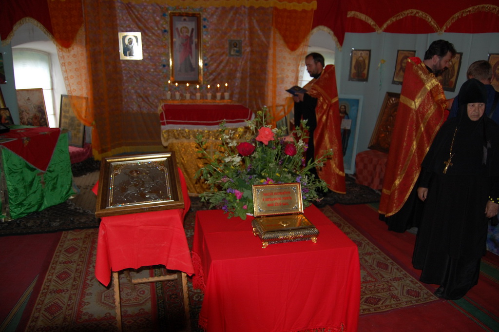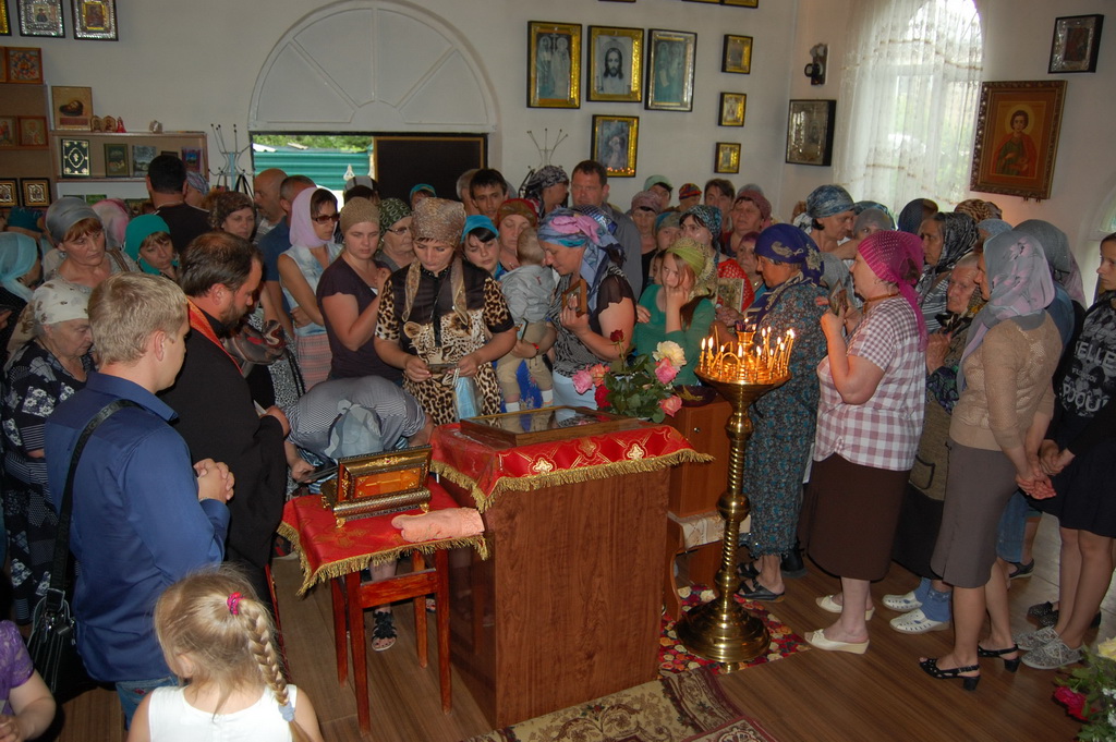 Из Михаило-Архангельского храма города Усть-Джегуты частица мощей была принесена в игуменский корпус бывшего Спасо-Преображенского женского монастыря.