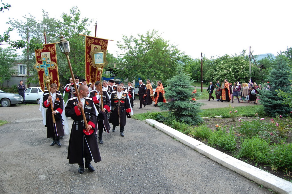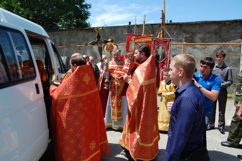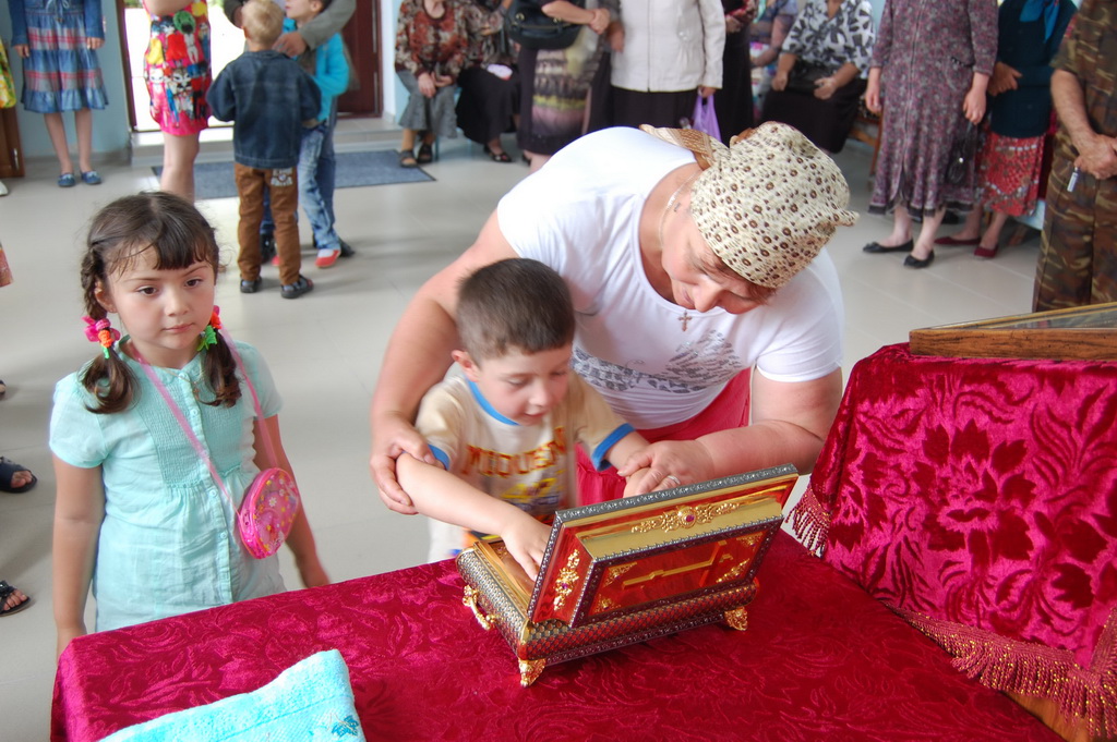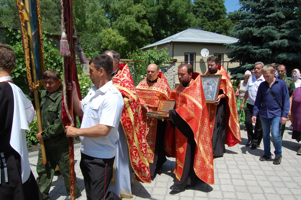 По дороге в Покровский храм станицы Кардоникской, в котором святыня останется до 11-00 15 июня, Крестный ход сделал остановку в Свято-Варваринском храме поселка Орджоникидзевского.