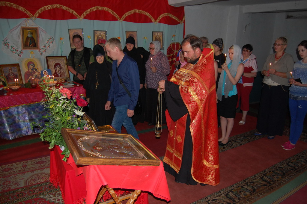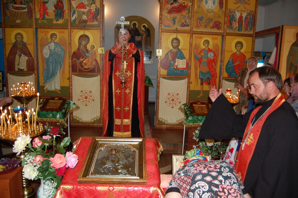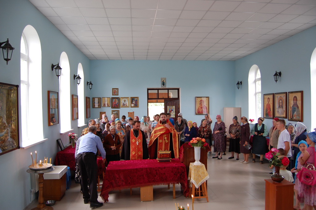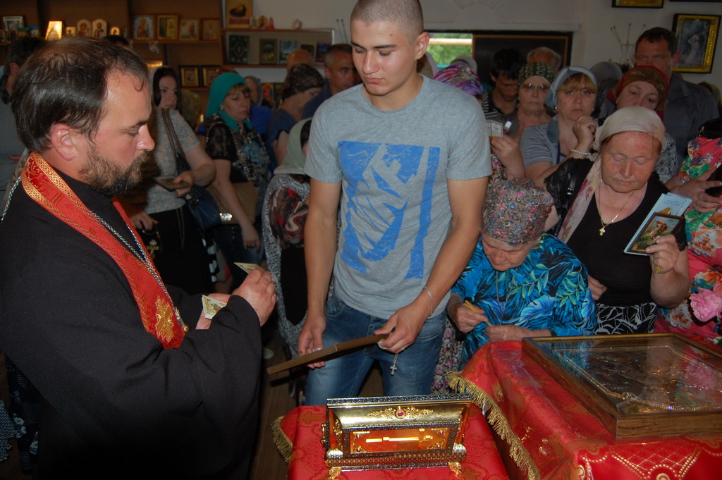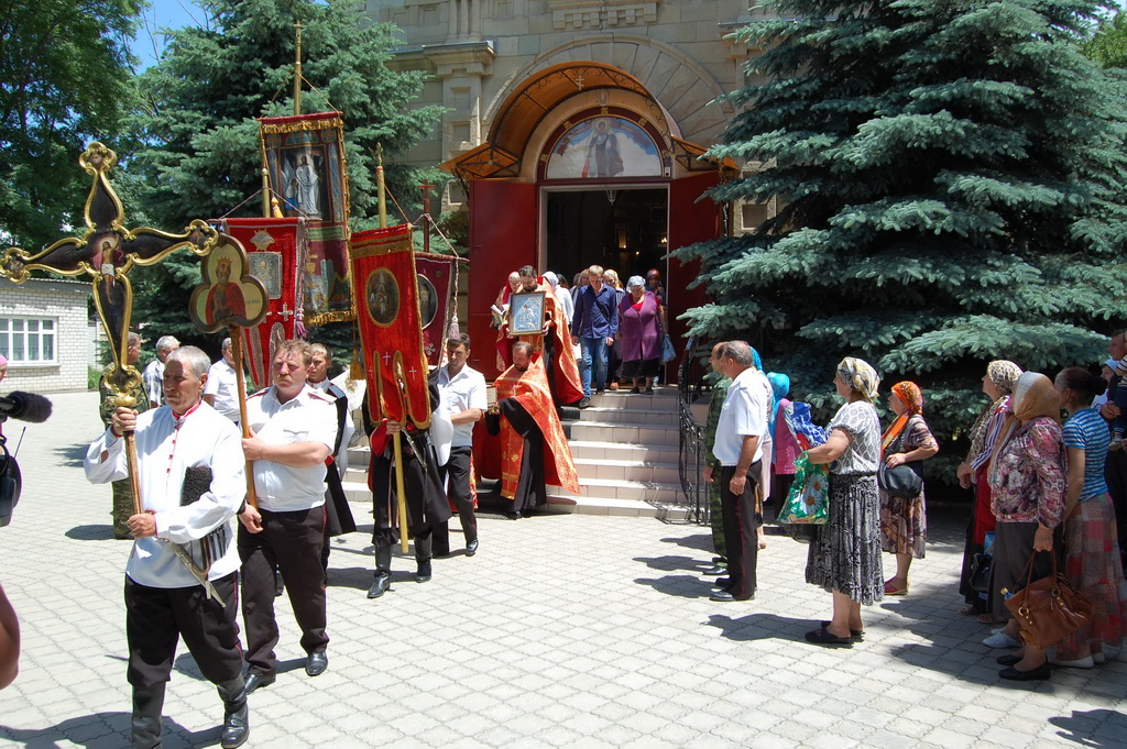 По дороге в Покровский храм станицы Кардоникской, в котором святыня останется до 11-00 15 июня, Крестный ход сделал остановку в Свято-Варваринском храме поселка Орджоникидзевского.