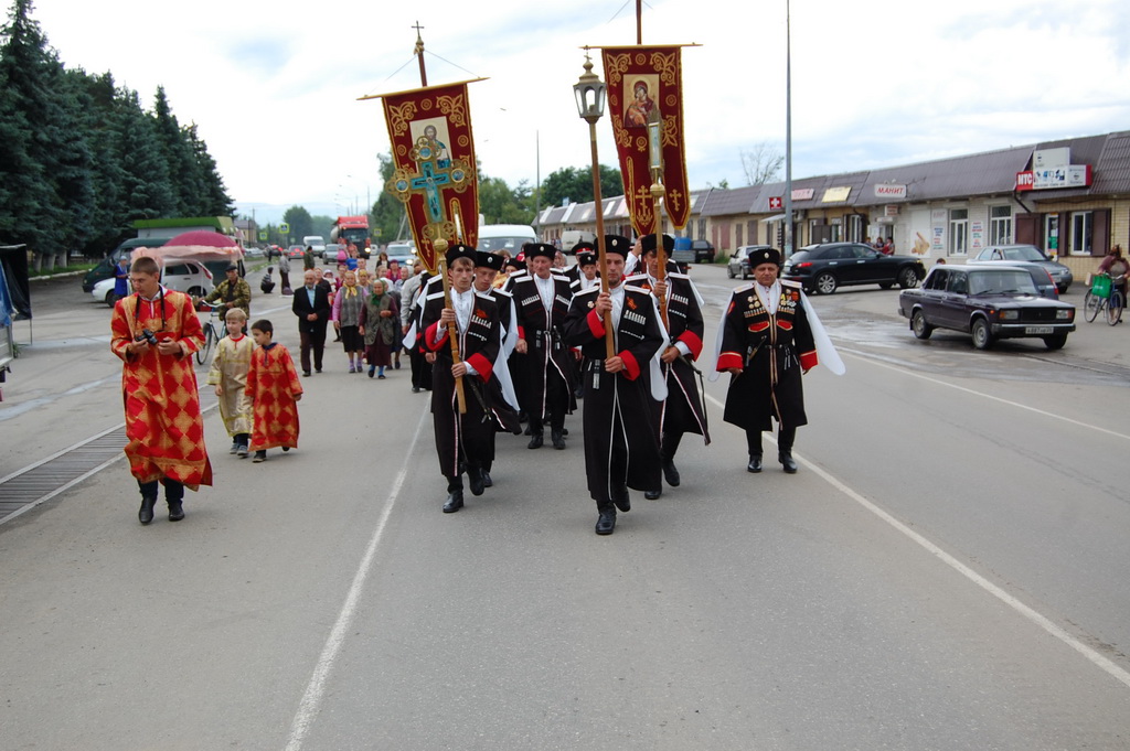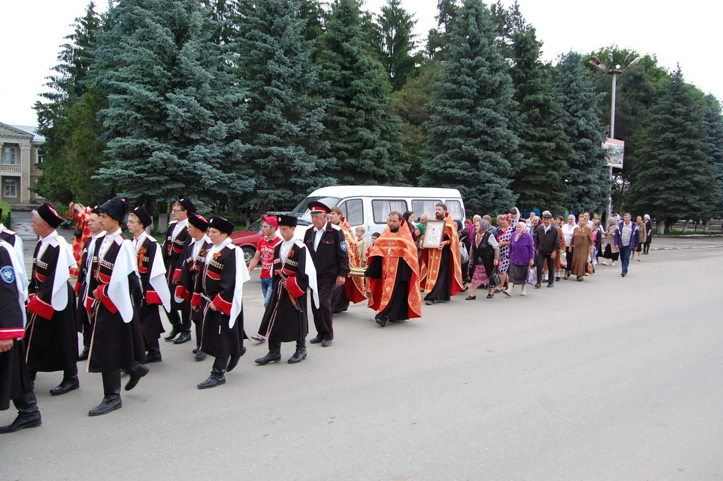 Уже вечером Крестный ход добрался до станицы Кардоникской. Святыню встречали казаки станицы и многочисленные верующие. Строевым порядком мощи Победоносца Георгия были пронесены по улицам станицы в Покровский храм. Благочинный округа в сослужении духовенства совершили в храме праздничное Богослужение.