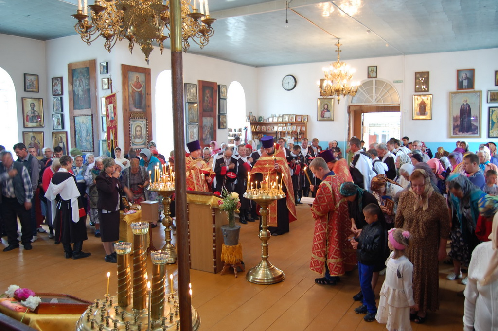 Святыню внесли уже не просто в «стены с крышей». В храме восстановлен иконостас, настелены полы, на стенах снова висят иконы. И только обгоревшее Евангелие да фотография храма до поджога, размещенные в специальной витрине, напоминают о том трагическом событии.