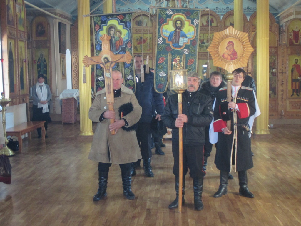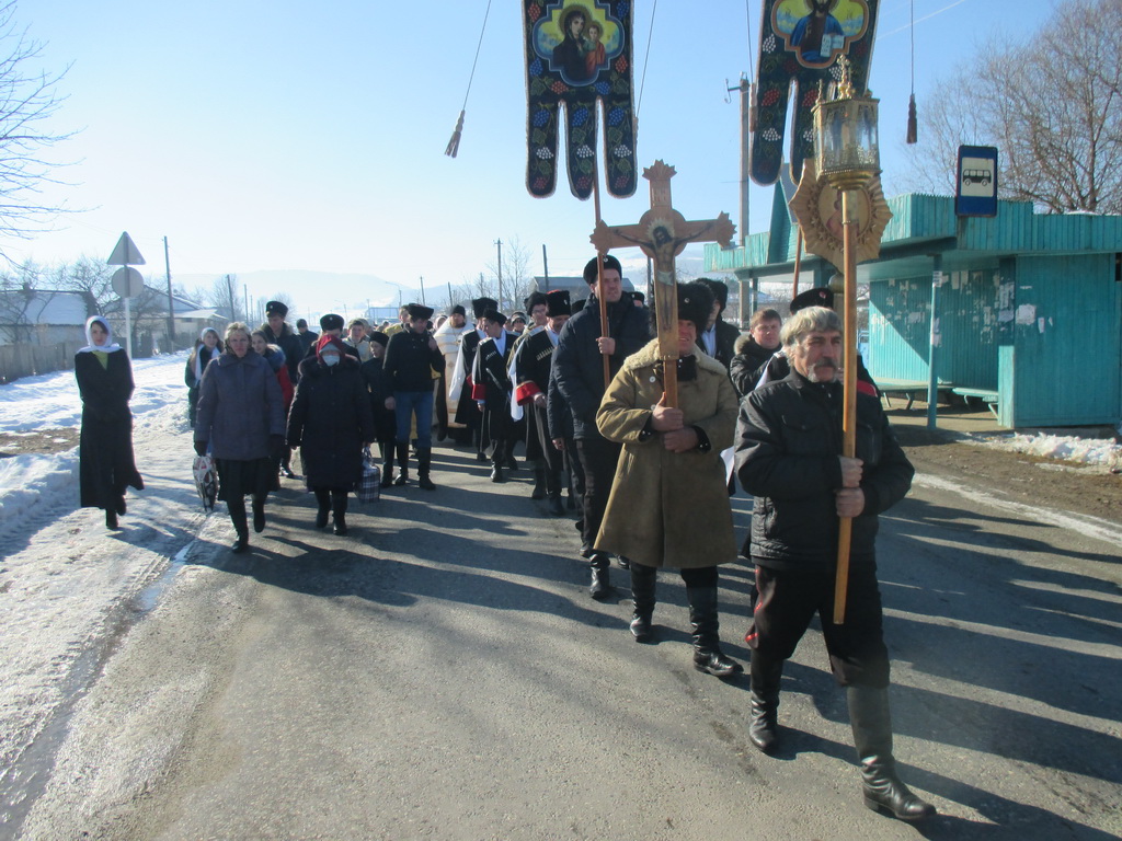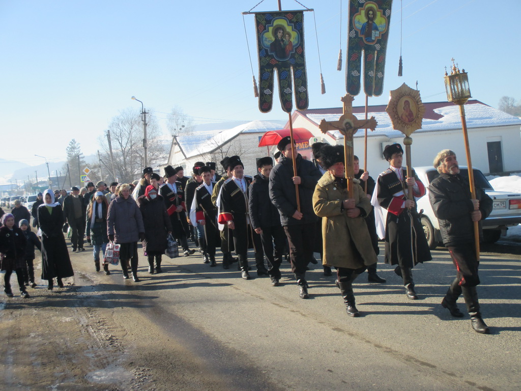 18 января, по окончании Божественной литургии прихожане Кирилломефодиевского храма станицы Крестным ходом идут к колодцу и над его водой снова и снова произносятся слова благословения.