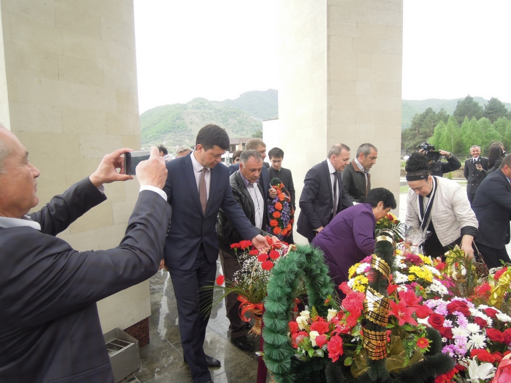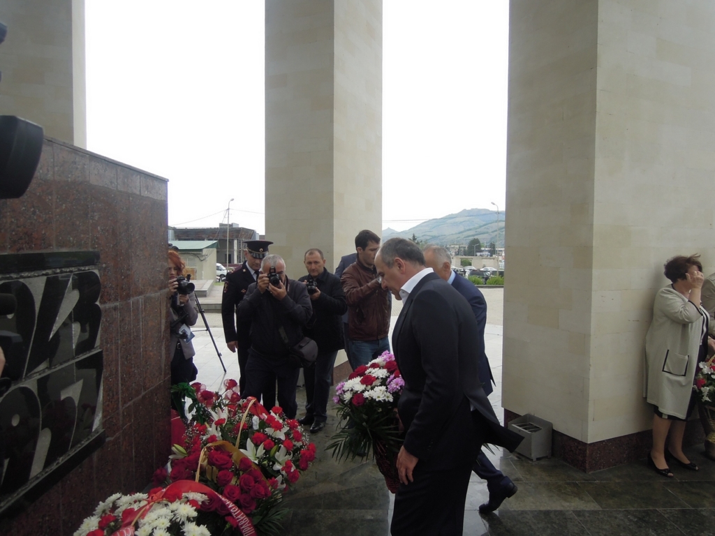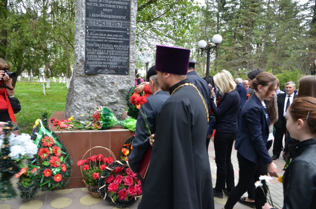 По окончании митинга состоялось торжественное возложение цветов к памятнику пострадавшим в годы депортации.