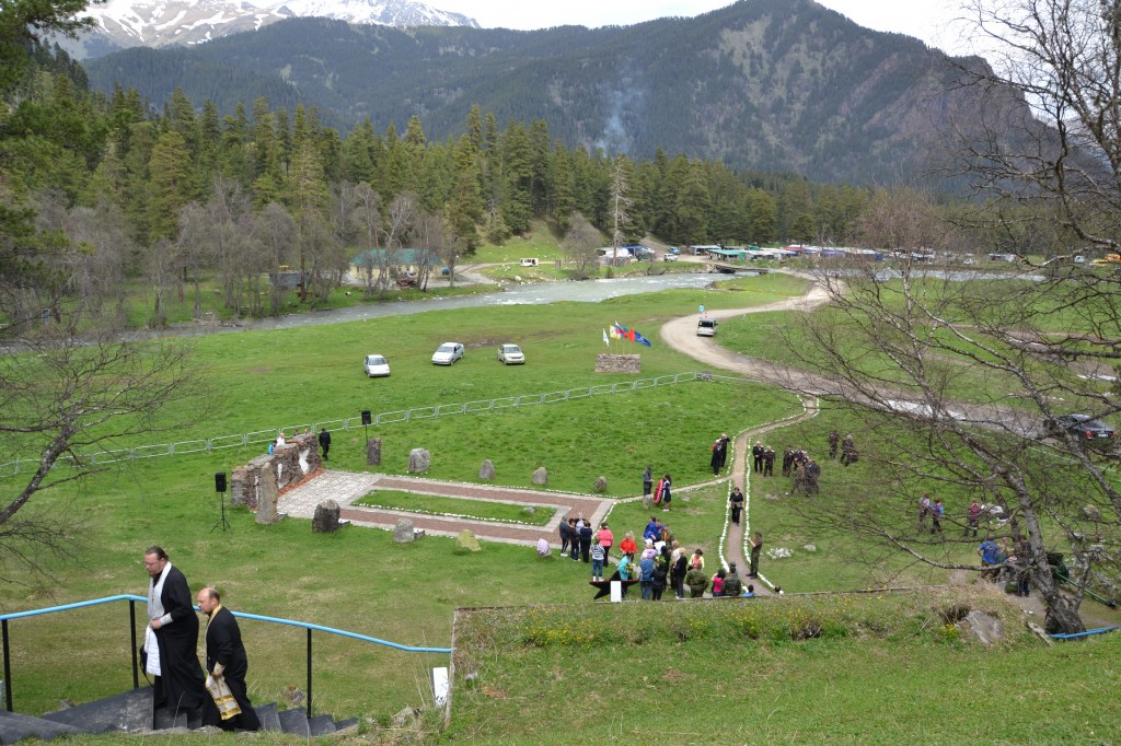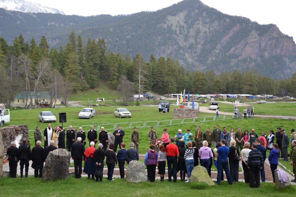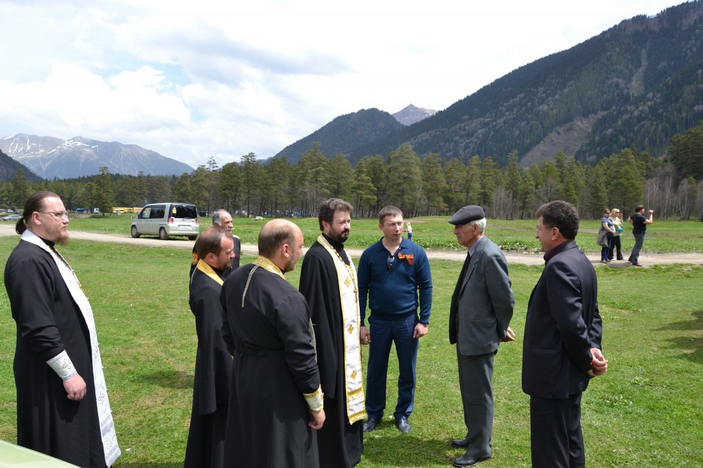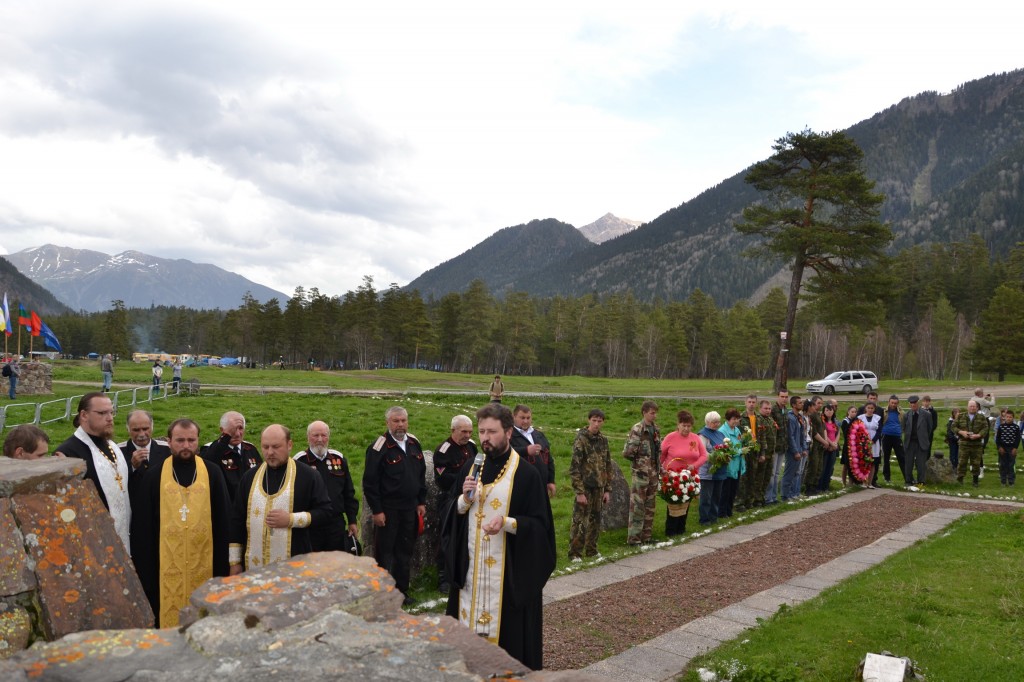 8 мая, накануне празднования 69-й годовщины победы советского народа в Великой Отечественной войне, благочинный и духовенство Южного Карачаево-Черкесского округа приняли участие в митинге на «Софийской поляне» в Архызском ущелье.Здесь уже тридцать лет располагается мемориал освободителям кавказских перевалов от фашистских оккупантов. Мемориал был построен по инициативе Невинномысского завода «Азот» и все эти годы поддерживается за счет средств предприятия.