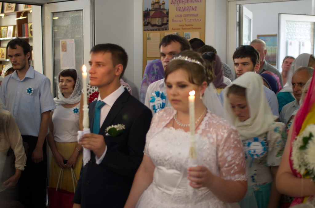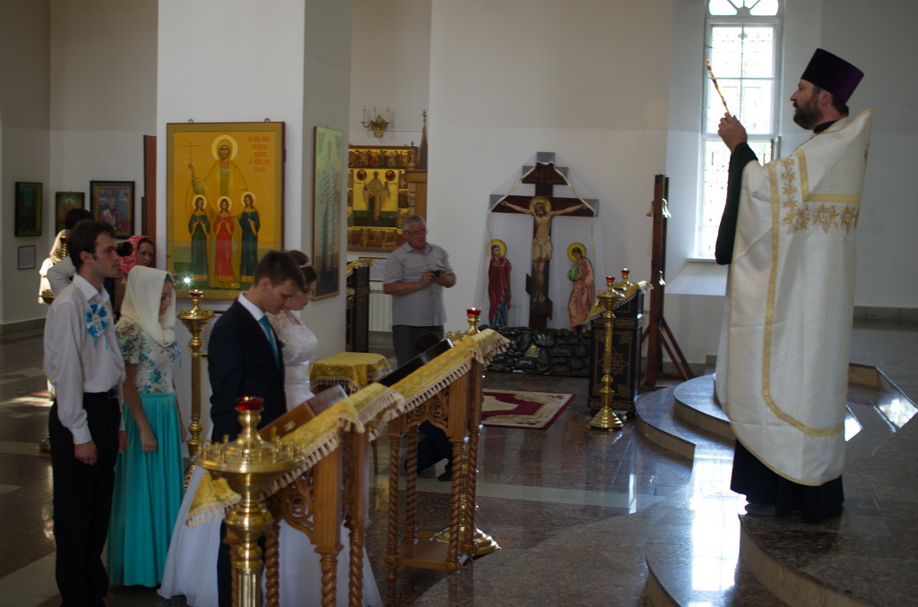 2 августа в Свято-Никольском соборе города Черкесска было совершено Таинство Венчания над студентом V курса Ставропольской Духовной Семинарии Алексеем Гуриным и псаломщицей собора Екатериной Смадич.