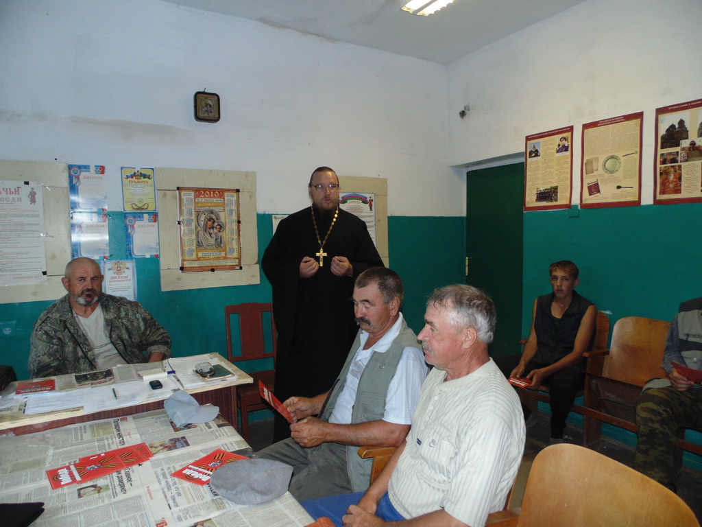19 июня в рамках епархиального Крестного хода с частицей мощей великомученика и Победоносца Георгия, приуроченного к 70-й годовщине Великой Победы, в казачьей управе Сторожевского станичного общества, настоятелем Свято-Никольского храма станицы Сторожевой протоиереем Андреем Кравченко, был прочитан доклад, рассказывающий о подвиге казачества в годы Великой Отечественной войны.