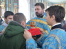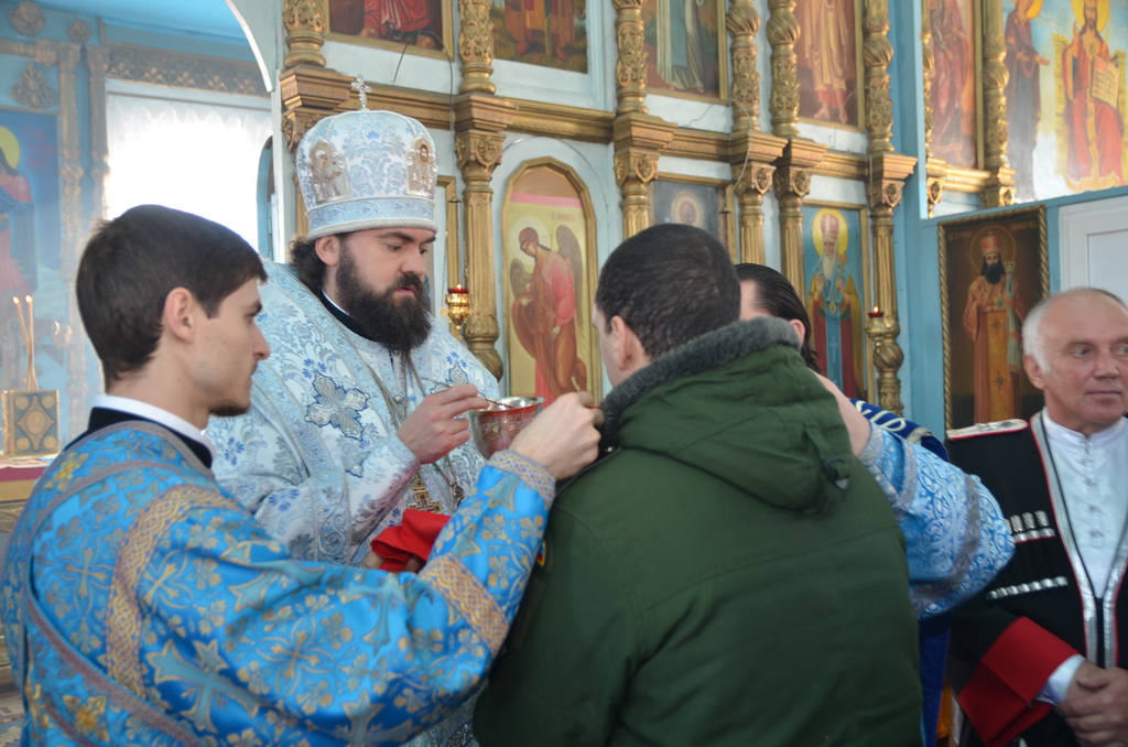 За Богослужением молились глава администрации Зеленчукского муниципального района Сергей Самоходкин, казаки Зеленчукского районного казачьего общества во главе с атаманом Владимиром Федоровым, военнослужащие по призыву в/ч 20096 аэрокосмических войск России.