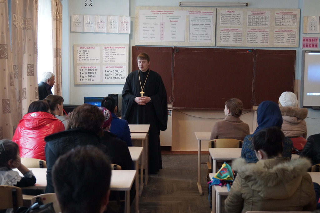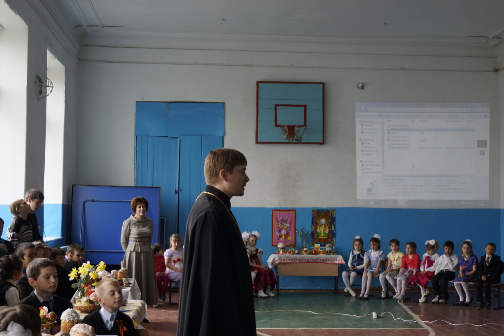 Обращаясь к родителям, священнослужитель предложил выбрать в рамках ОРКСЭ модуль «Основы Православной Культуры». «Проживая в казачьей станице, будучи крещенными православными людьми, наши дети больше пользы для себя извлекут, изучая Основы Православной Культуры, потому что, как и их родители, являются носителями именно этой культурной традиции. Выбирая для своих детей этот модуль, мы устанавливаем для них возможность более подробно ознакомиться с истоками своей религиозной культуры ее богатейшим наследием и красотой. В эти праздничные дни в школе мы видим выставки, подготовленные нашими детьми и рассказывающие нам о праздновании Светлого Христова Воскресения, что еще раз доказывает к какой именно религиозно-культурной традиции мы принадлежим».
