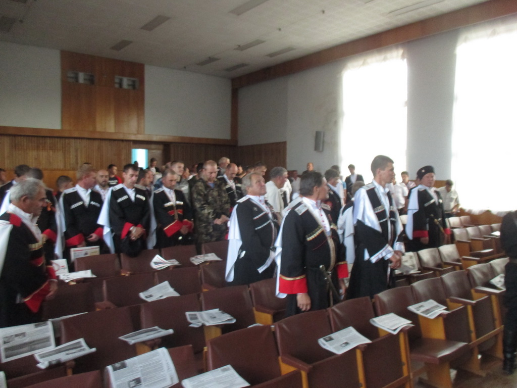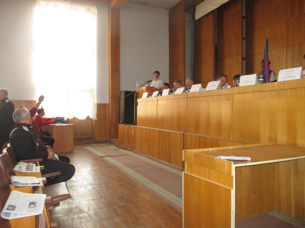 19 августа в актовом зале администрации Урупского района состоялся отчетный сбор казаков Урупского района. В работе сбора приняли участие заместитель атамана Кубанского казачьего войска войсковой старшина Перенишка К.Я., атаман Баталпашинского отдела Кубанского казачьего войска казачий полковник Бородкин В.П.,начальник штаба Баталпашинского отдела КВО хорунжий Свиридов А.С., Глава администрации Урупского района Шутов А.П., помощник благочинного Южного Карачаево-Черкесского церковного округа по работе с казачеством, настоятель храма святых равноапостольных Мефодия и Кирилла иерей Алексей Соловьев, начальник Урупского районного отдела образования Озерная Т.И. Был заслушан отчет атамана Урупского районного казачьего общества подхорунжего Гежина В.Е. о проделанной работе за истекший год. На рассмотрение общества были представлены также отчет председателя финансово-ревизионной комиссии Урупского РКО старшего вахмистра Федькова С.В., председателя Совета стариков Урупского РКО есаула Красникова А.П. и председателя суда чести есаула Басюк П.Д. Глава администрации Урупского района Шутов А.П. в своем выступлении затронул вопросы о взаимодействии казаков и района. Настоятель Кирилло-Мефодиевского храма станицы Преградной иерей Алексий Соловьев в своем выступлении отметил активное участие казаков не только в праздничных Богослужениях, но и в повседневной жизни храма. Оценивая отчет атамана, атаманы станичных и хуторских обществ отметили, что в любом начинании районный атаман всегда впереди. Его пример вдохновляет всех казаков района. Участники сбора единогласно признали работу правления и атамана Урупского районного казачьего общества Виталия Гежина удовлетворительной. В заключение настоятель Кирилло-Мефодиевского храма станицы Преградной иерей Алексий Соловьев благославил атамана на новые начинания и пожелал всяческих успехов.