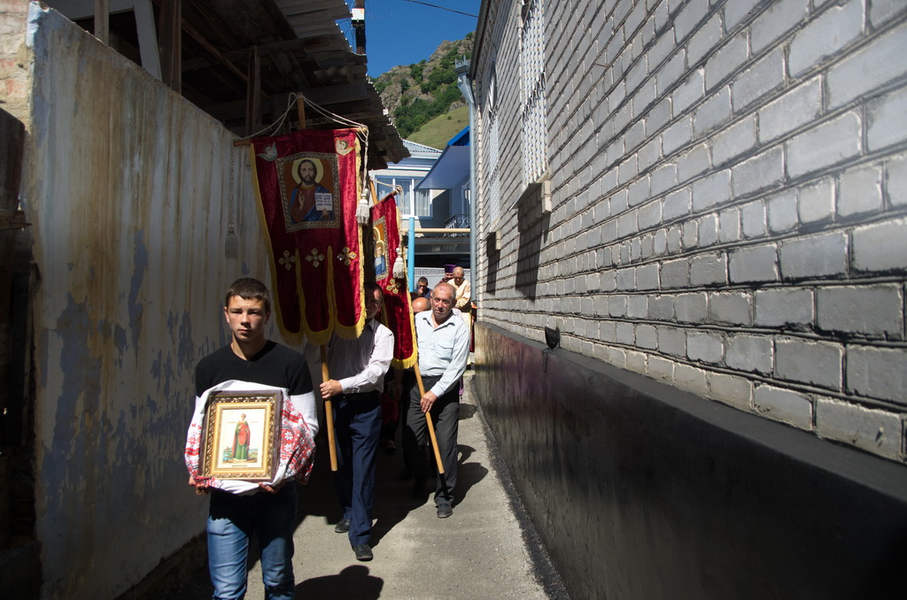 Многие храмы Благословенного Кавказа, особенно те, которые построены при больницах и госпиталях освящены в память великомученика Пантелеимона. В его память освящен и небольшой храм горного города Карачаевска.