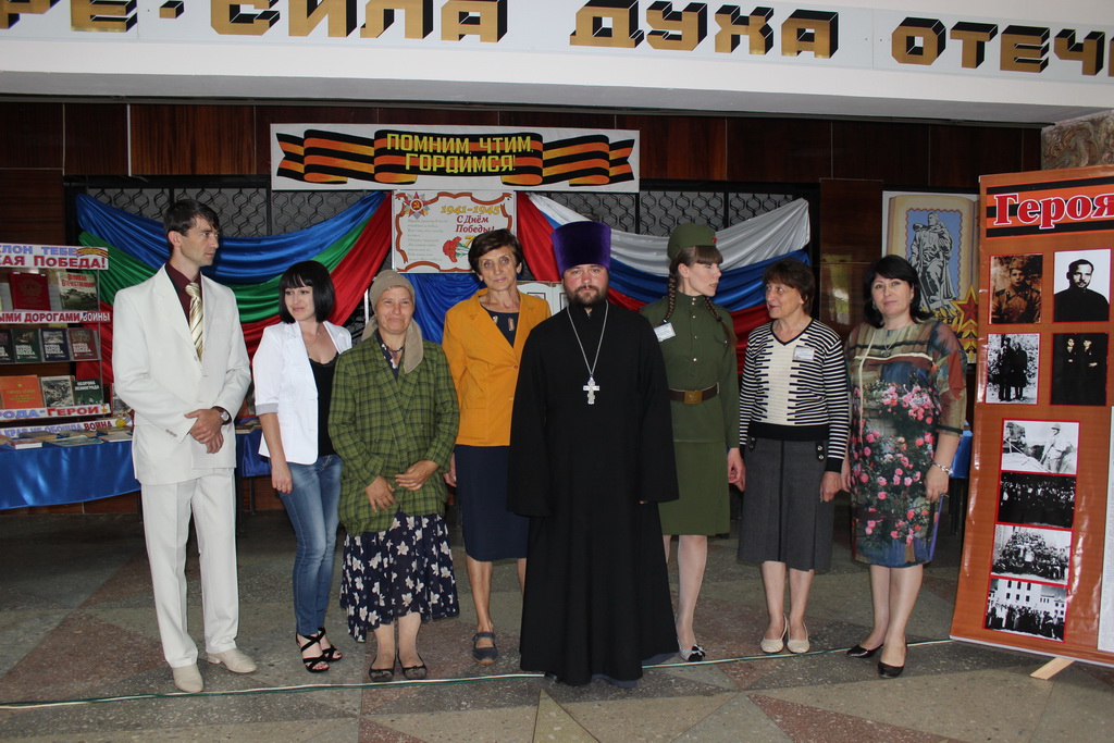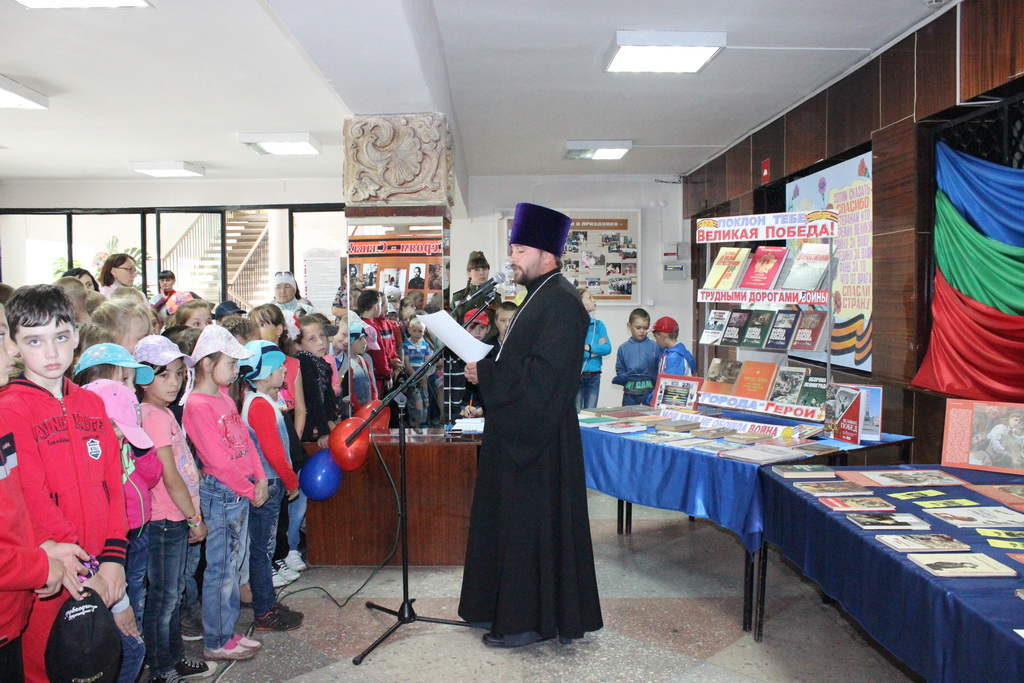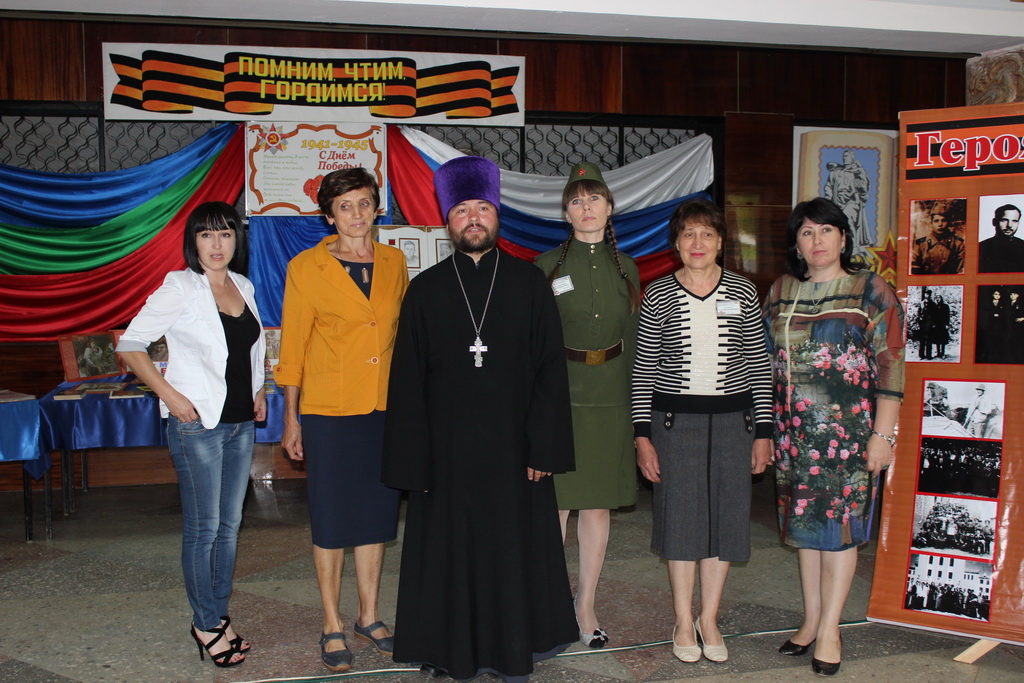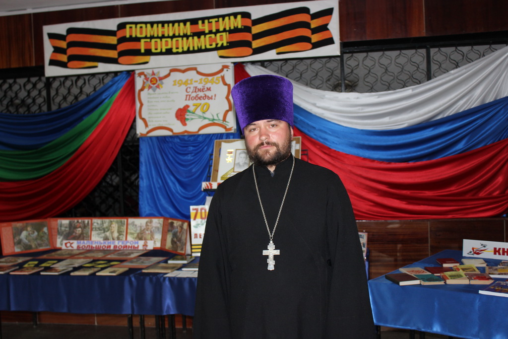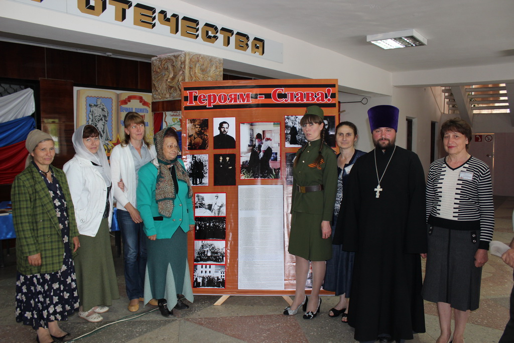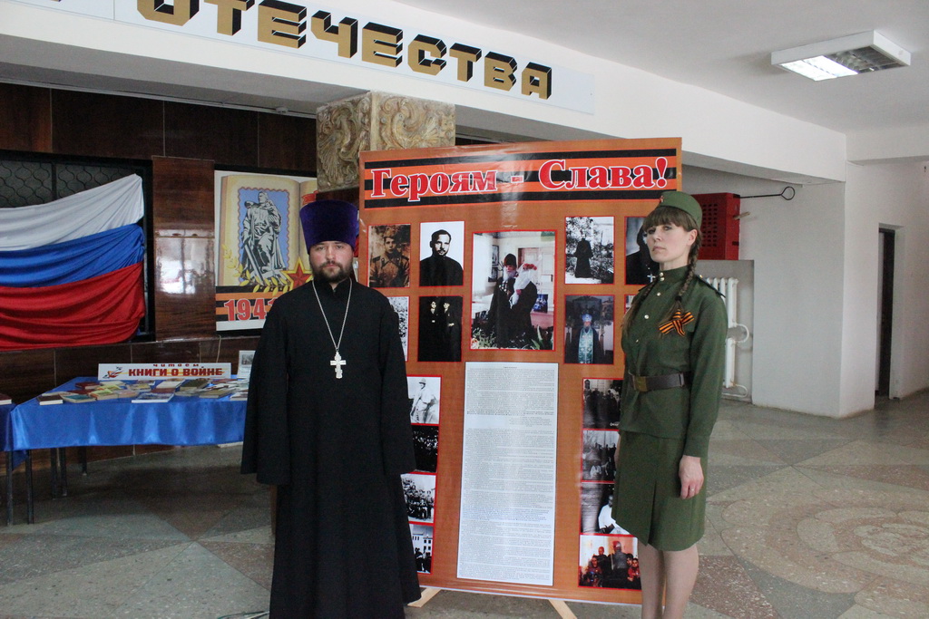 Центральным экспонатом выставки стал баннер, рассказывающий о жизни почетного гражданина станицы Зеленчукской, ветерана Отечественной войны протоиерея Петра Козырь.