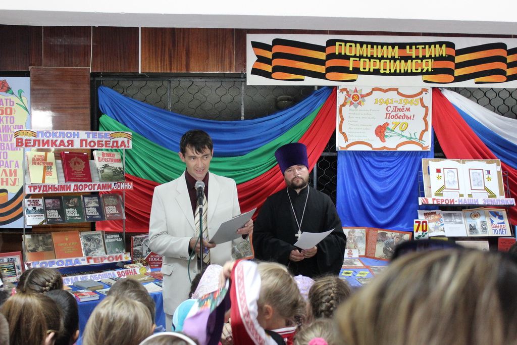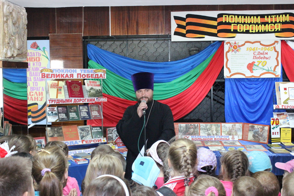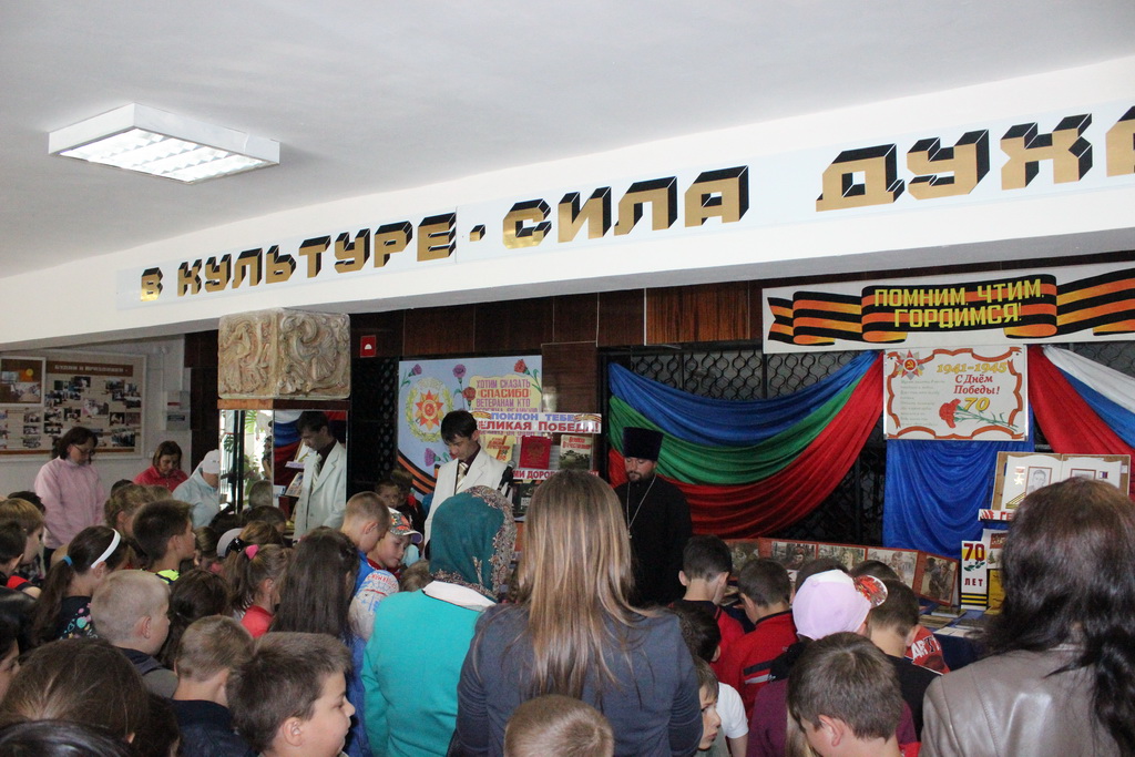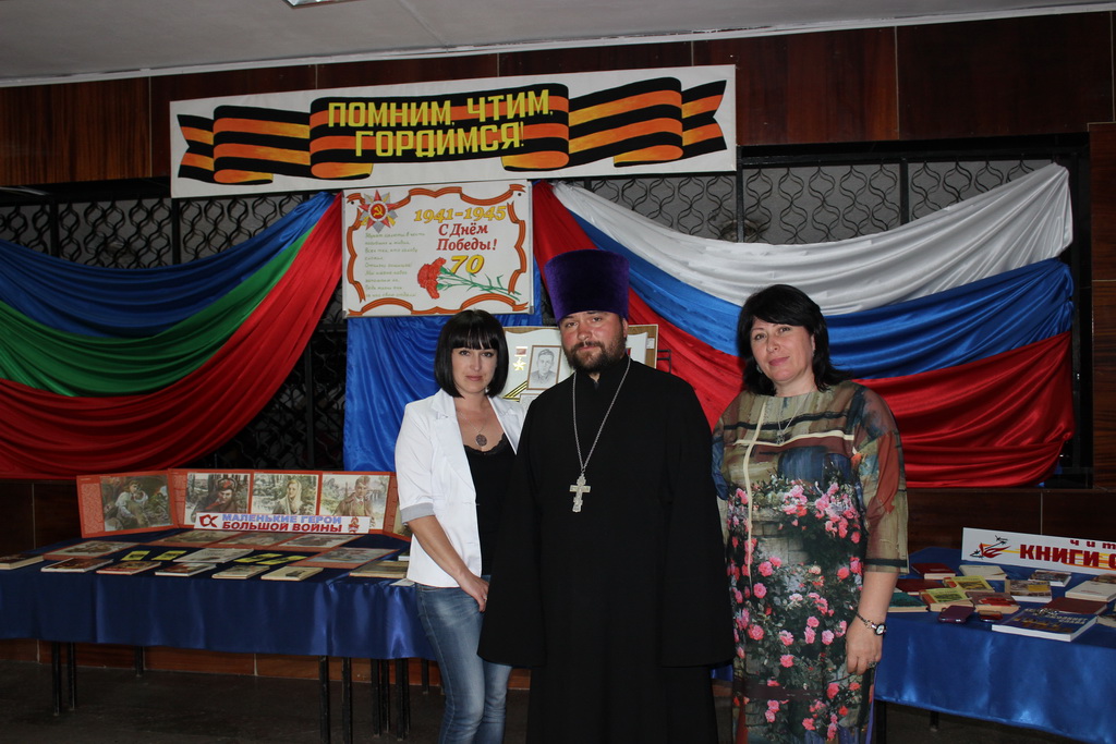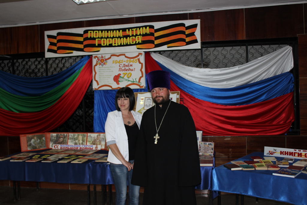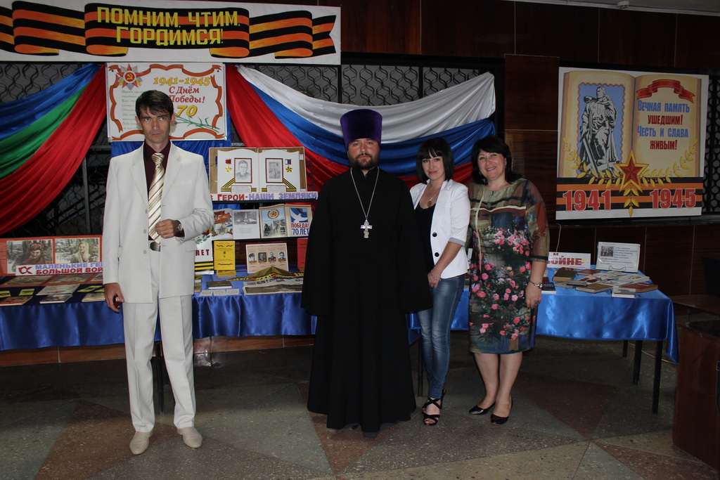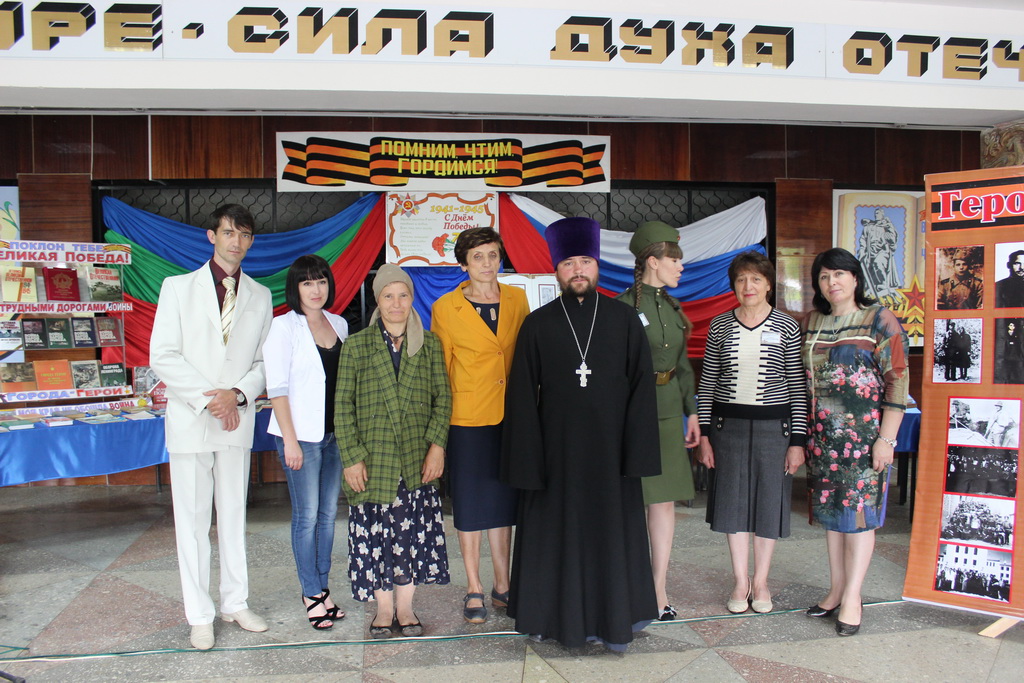 Центральным экспонатом выставки стал баннер, рассказывающий о жизни почетного гражданина станицы Зеленчукской, ветерана Отечественной войны протоиерея Петра Козырь.
