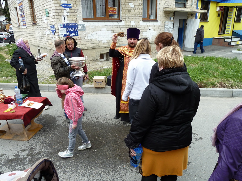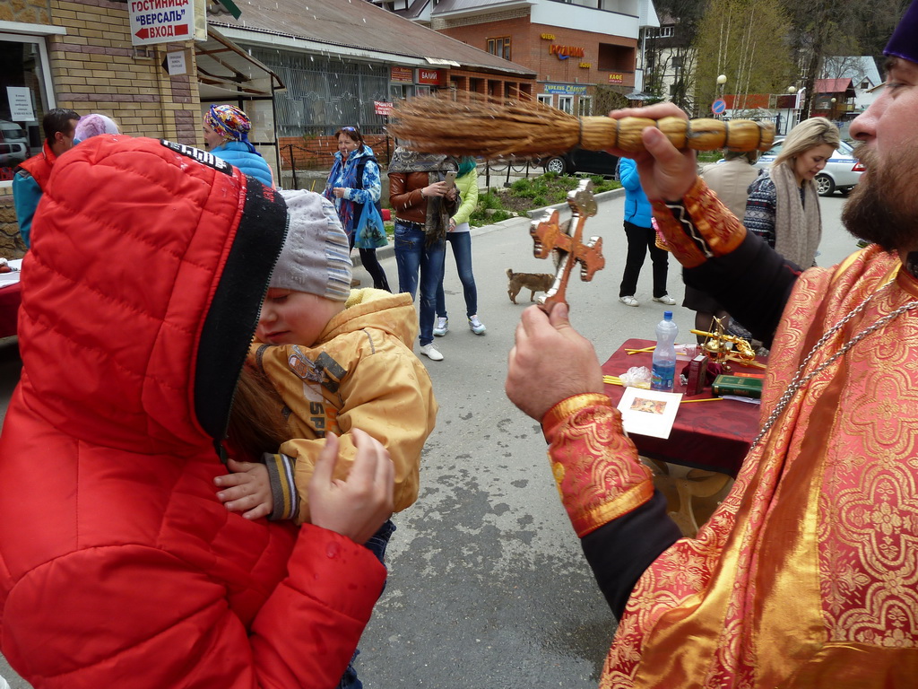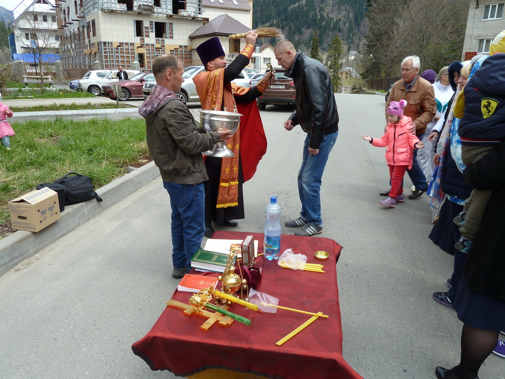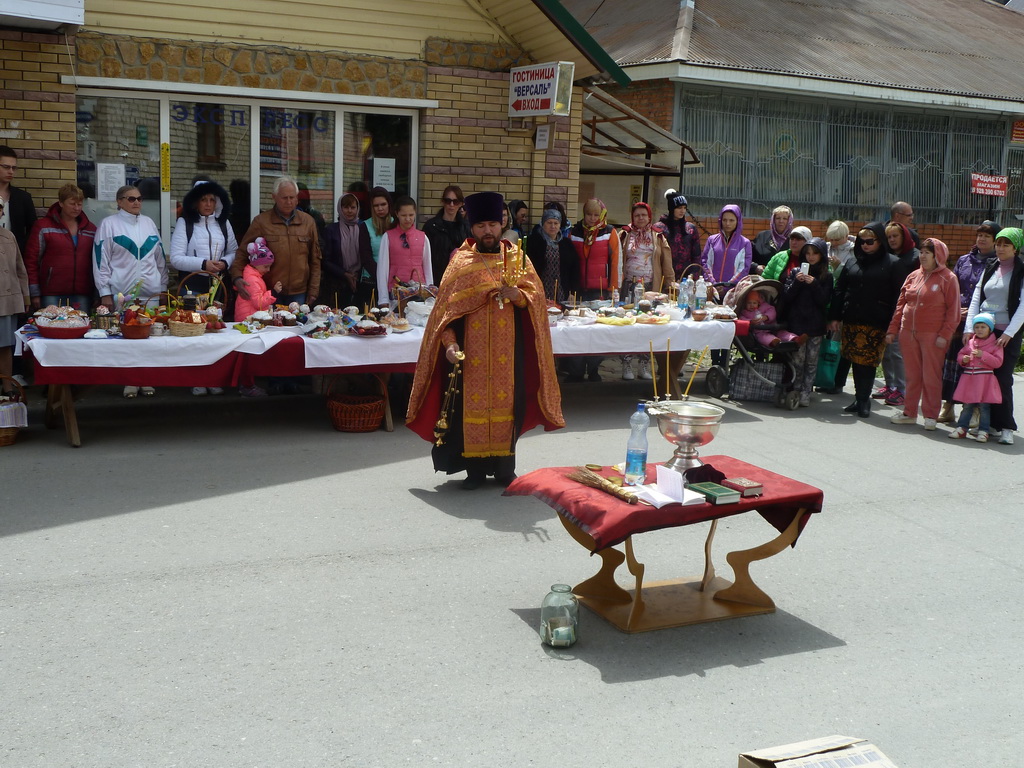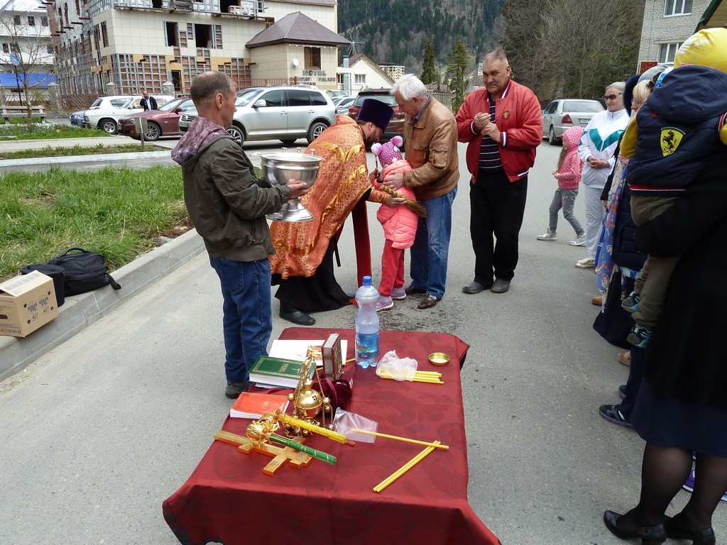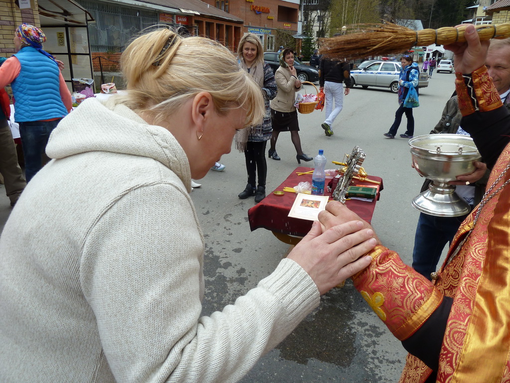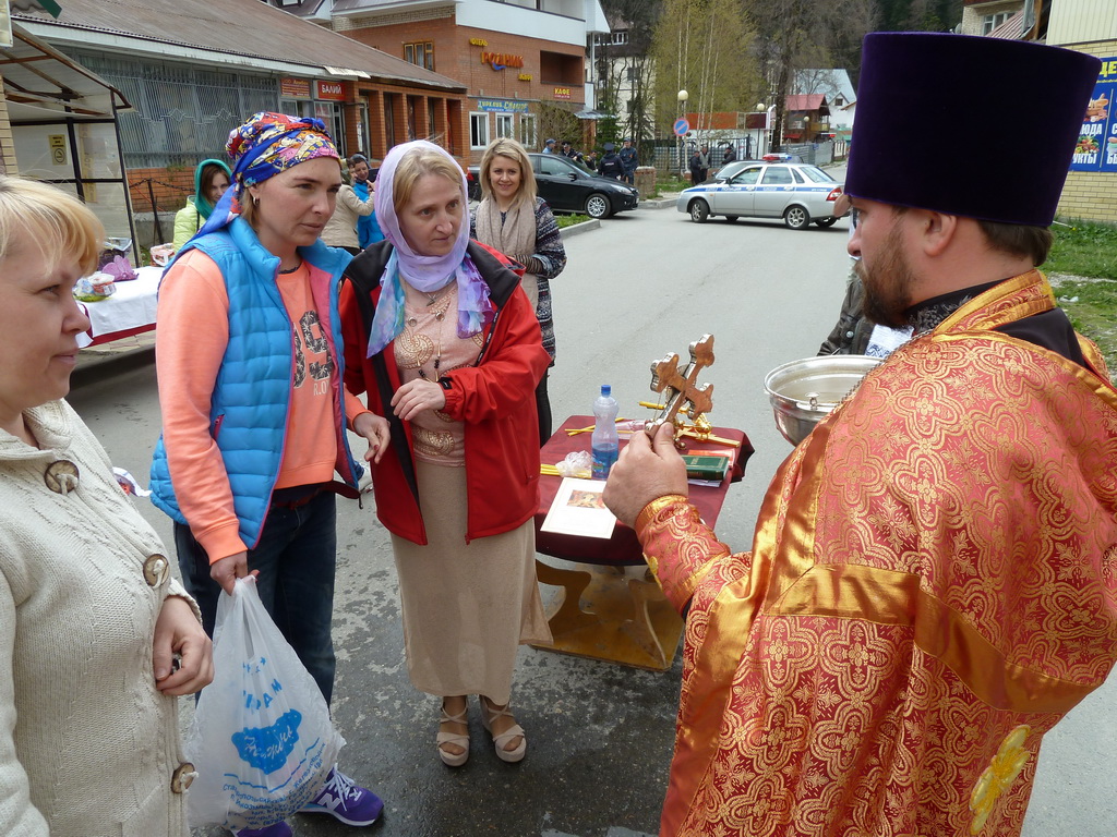 В день Светлого Христова Воскресения православные верующие общины в память священномученика Вениамина митрополита Петроградского поселка Домбай собрались, чтобы молитвенно восславить Воскресшего Христа. По окончании пасхального молебна, который совершил настоятель общины иерей Сергий Фоменко, были окроплены святой водой праздничные приношения жителей и гостей поселка Домбай.