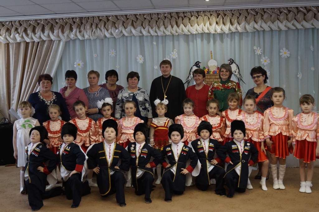 Дети рассказывали стихи, посвященные празднику, пели и танцевали. Поздравить маленьких станичников с праздником пришел настоятель Покровского храма станицы Кардоникской иерей Димитрий Бураков.