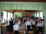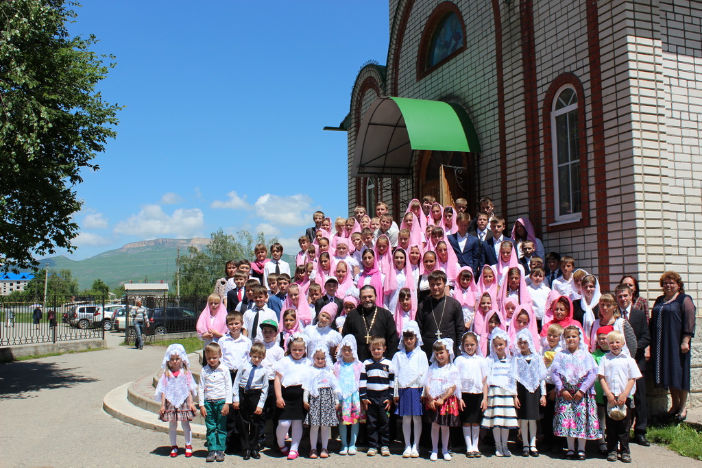 Выступление организовали на лужайке перед Петропавловским храмом станицы Зеленчукской. Открывали утренник самые маленькие — подготовительная группа школы. Старательно выговаривая слова, дети прочитали стихи и исполнили песню. Учащиеся средней и старшей группы подготовили небольшую костюмированную постановку, рассказывающую о явлениях Господа Иисуса по Его воскресении.