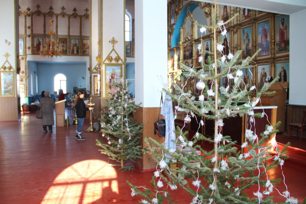 Петропавловский храм станицы Зеленчукской готовится к встрече праздника Рождества Христова. В храме поставлены и украшены рождественские ели. Дизайн и воплощение елочных украшений был разработан руководителем кружка флористики Детского дома творчества станицы Зеленчукской Антониной Германовой.