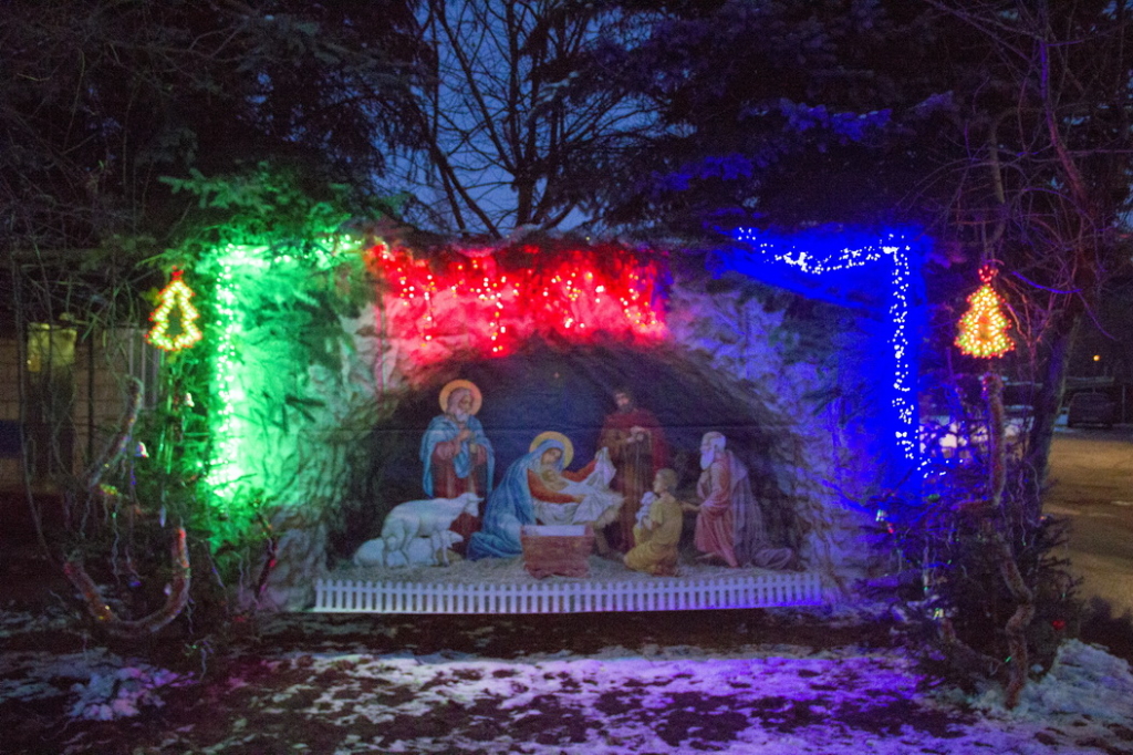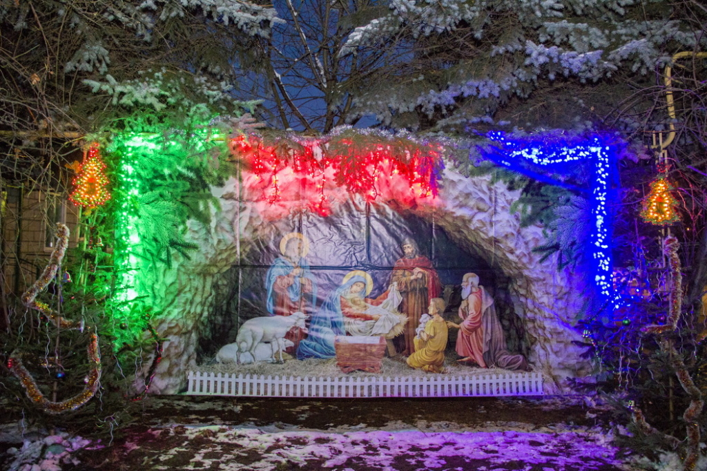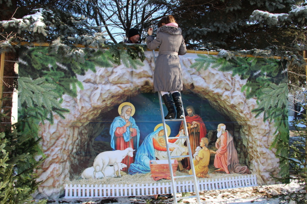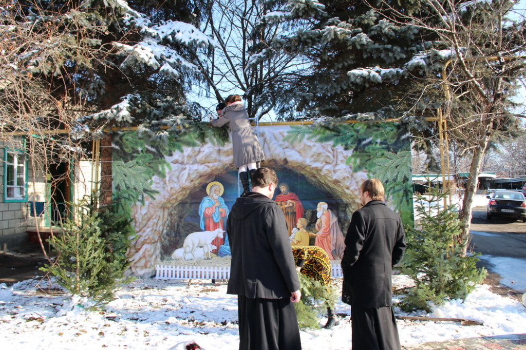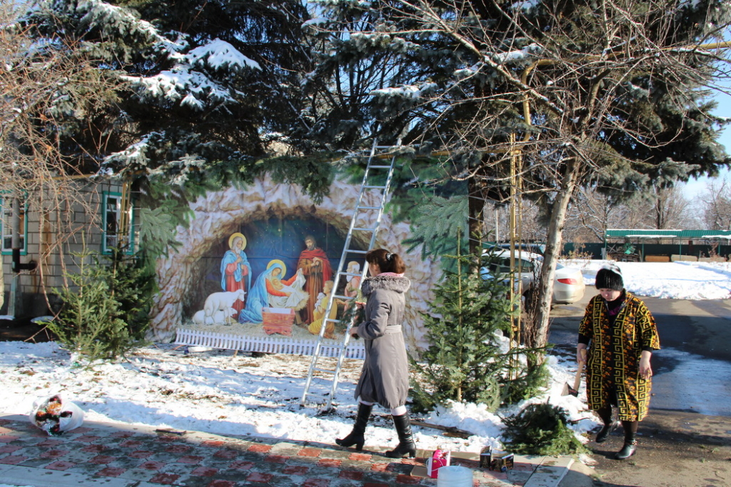 Первый раз к Рождеству в Петропавловском храме соорудили макет вертепа, который размещен около храма.