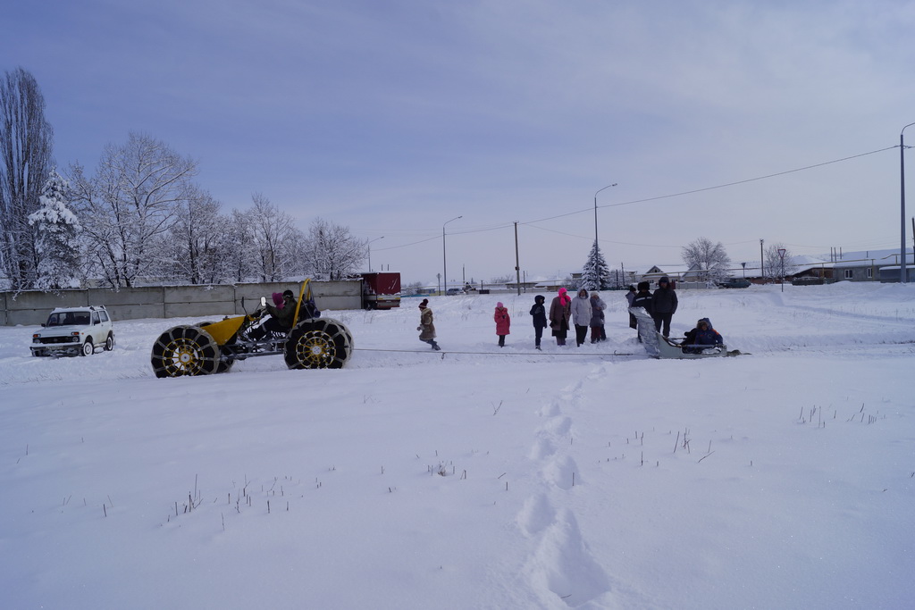 Последним подарком перед началом 3-й учебной четверти стало для детей катание на «барсике» — самодельной машине, которая есть в хозяйстве настоятеля Казанского храма села Марухи иеромонаха Александра (Емельянова).