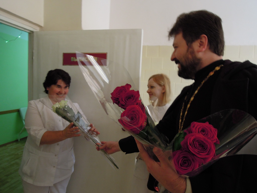 Протоиерей Евгений Субтельный высказал слова благодарности работникам родильного отделения районной больницы за их самоотверженный труд, который не признает праздников и выходных, и пожелал здоровья медицинскому персоналу отделения, а также их родным и близким.