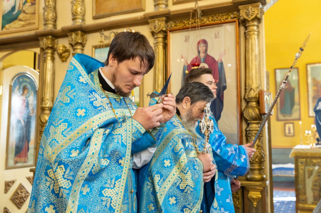 За Литургией Архипастырь совершил хиротонии выпускника Московской духовной семинарии диакона Иоанна Субтельного в сан пресвитера и выпускника Ставропольской духовной семинарии Георгия Чайковского в сан диакона.
