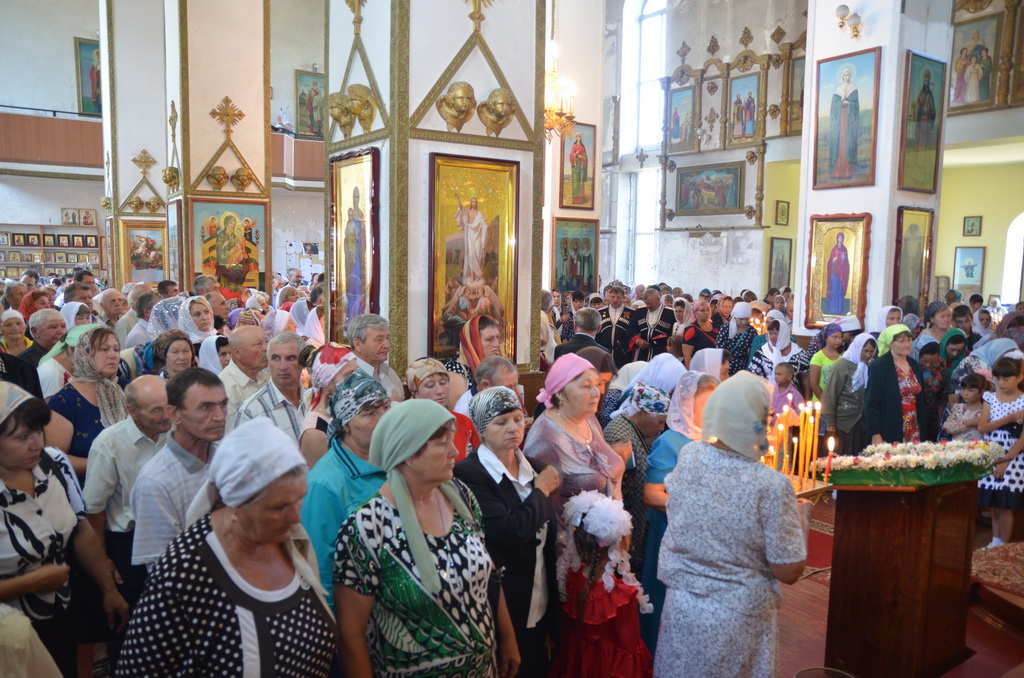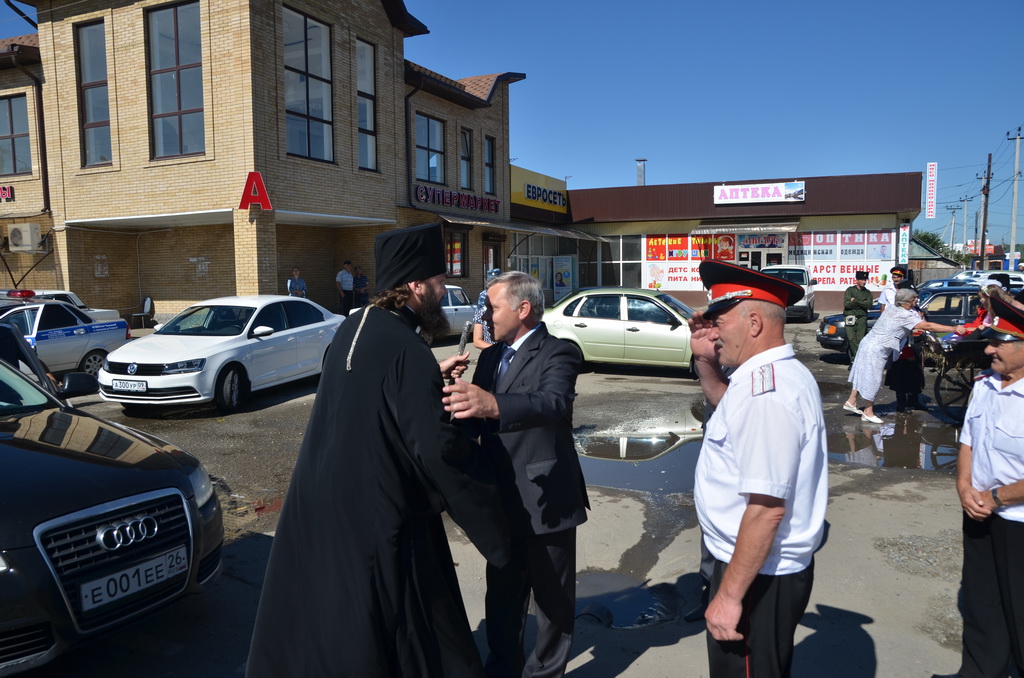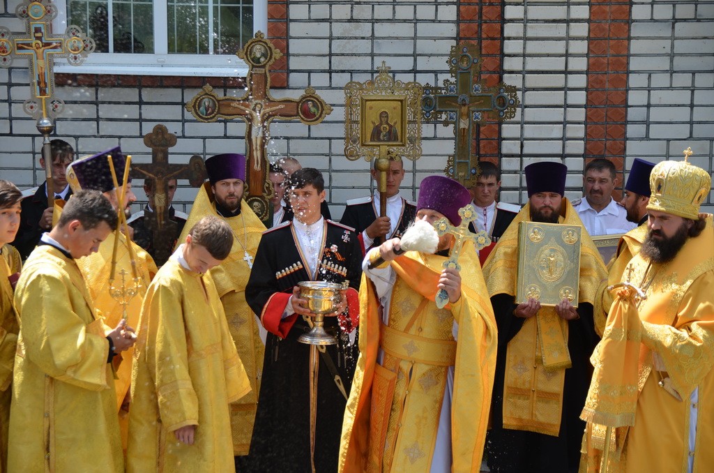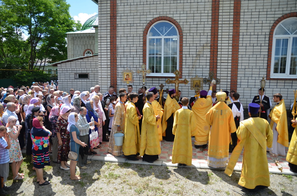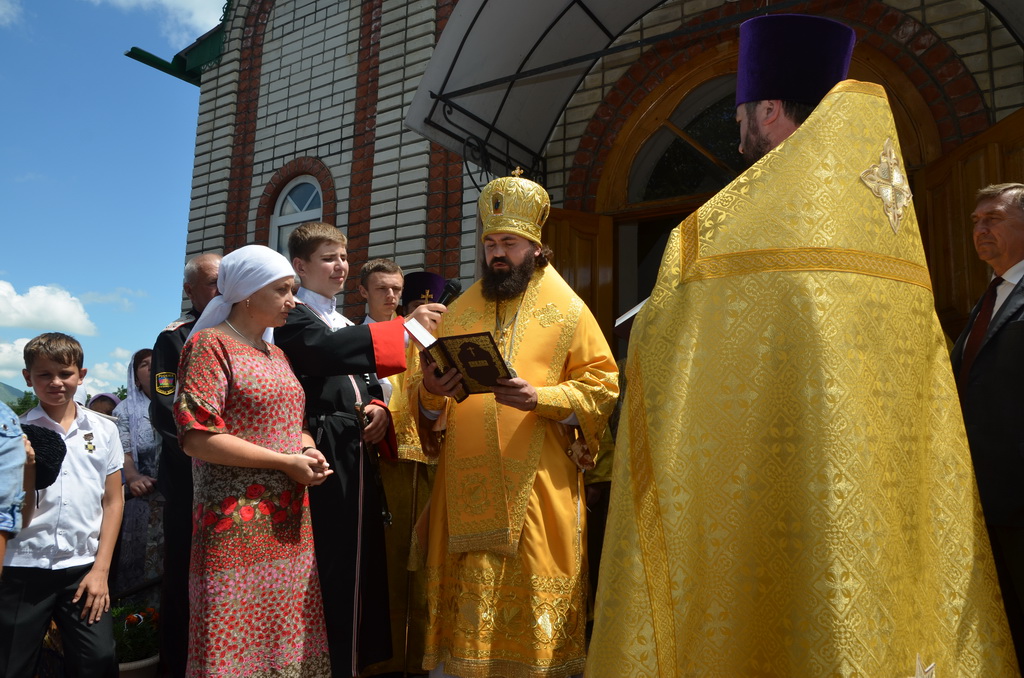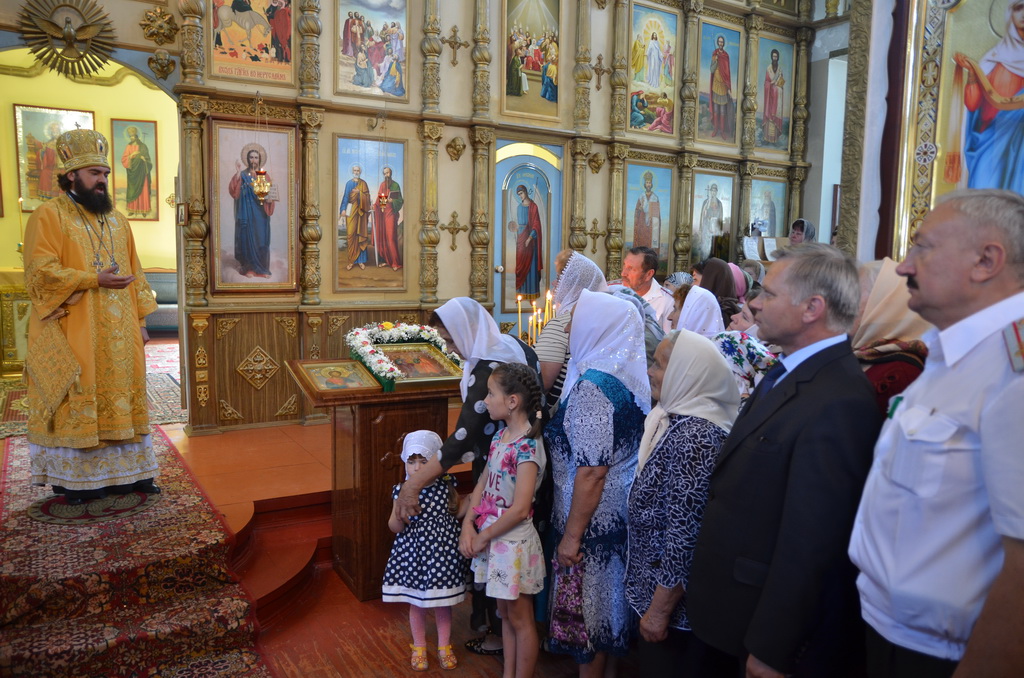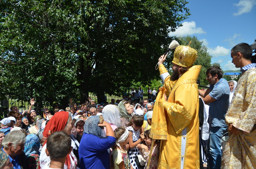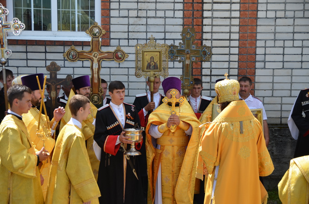 По завершении Божественной литургии состоялся уставной крестный ход во круг храма. Затем, архиепископ Феофилакт ещё раз поздравил молящихся с престольным праздником. Благословенную Патриаршую грамоту Владыка вручил Алесе Астафуровой — офицеру 34 мотострелковой бригады (горной) за труды по строительству храма на территории части. Особо потрудившихся в организации престольного праздника представителей казачества и прихожан Архипастырь удостоил Архиерейских грамот, благодарственных писем, и именных Библий. После чего, были зачитаны приветственные адреса врио Главы республики Рашида Темрезова, и Председателя Парламента республики Александра Иванова. Затем собравшихся поздравил Атаман Баталпашинского отдела Кубанского казачьего Виктор Бородкин.