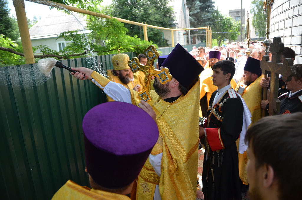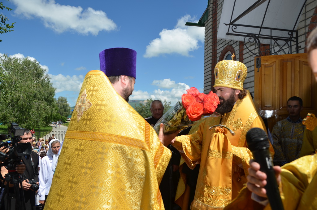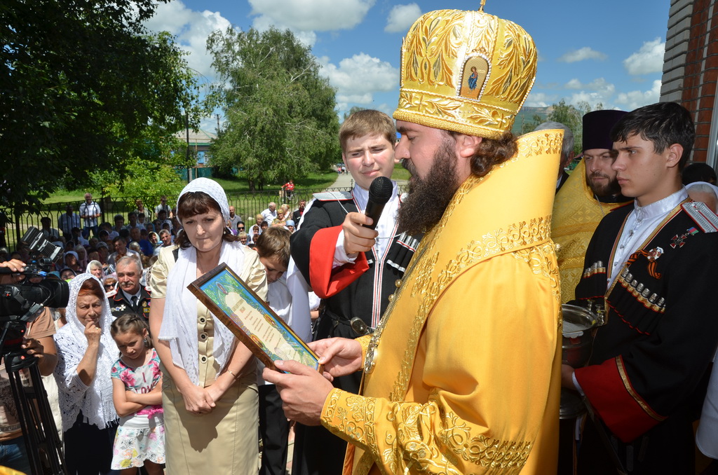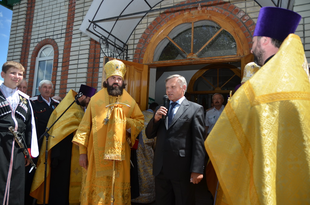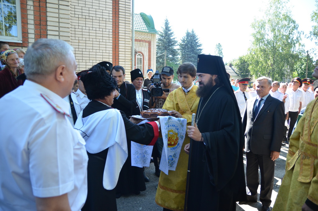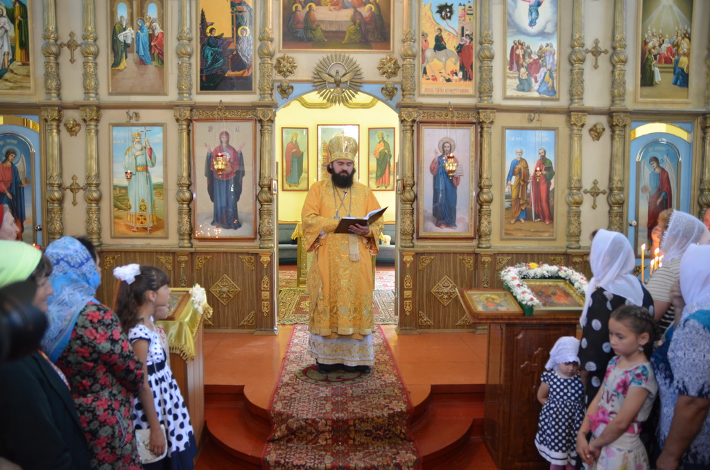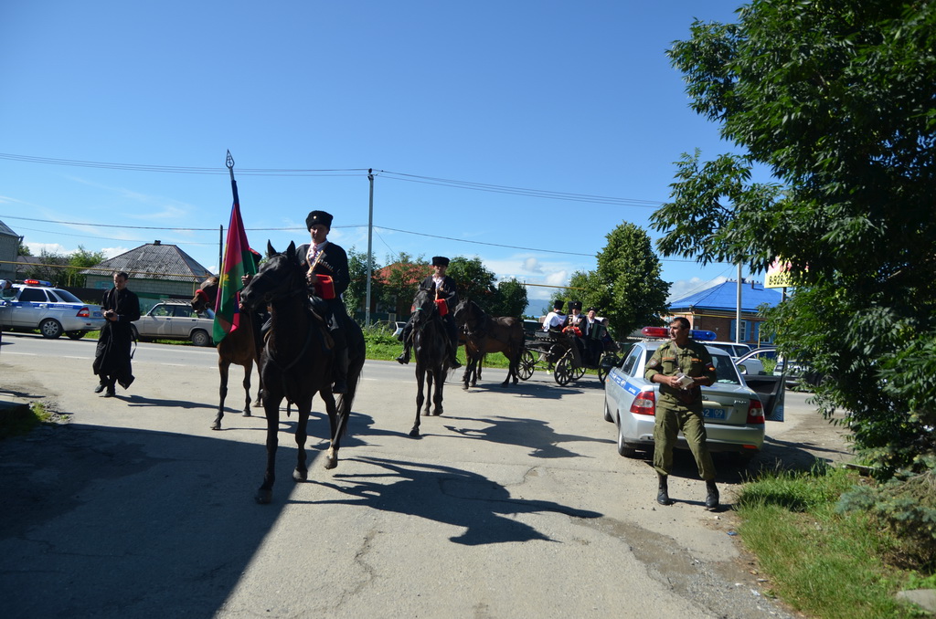По завершении Божественной литургии состоялся уставной крестный ход во круг храма. Затем, архиепископ Феофилакт ещё раз поздравил молящихся с престольным праздником. Благословенную Патриаршую грамоту Владыка вручил Алесе Астафуровой — офицеру 34 мотострелковой бригады (горной) за труды по строительству храма на территории части. Особо потрудившихся в организации престольного праздника представителей казачества и прихожан Архипастырь удостоил Архиерейских грамот, благодарственных писем, и именных Библий. После чего, были зачитаны приветственные адреса врио Главы республики Рашида Темрезова, и Председателя Парламента республики Александра Иванова. Затем собравшихся поздравил Атаман Баталпашинского отдела Кубанского казачьего Виктор Бородкин.