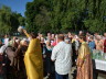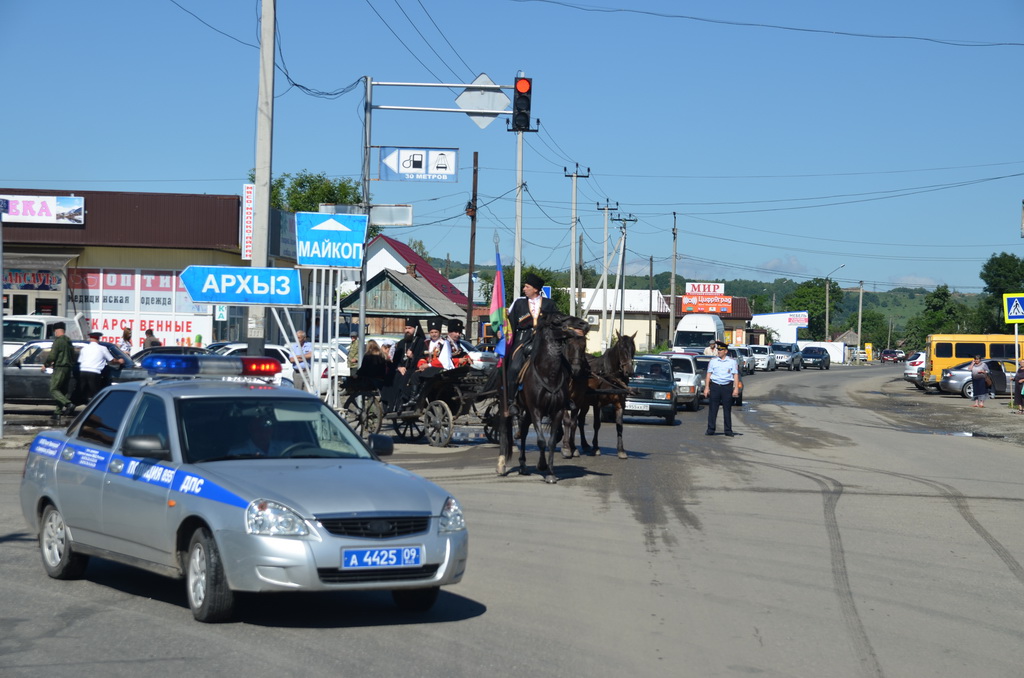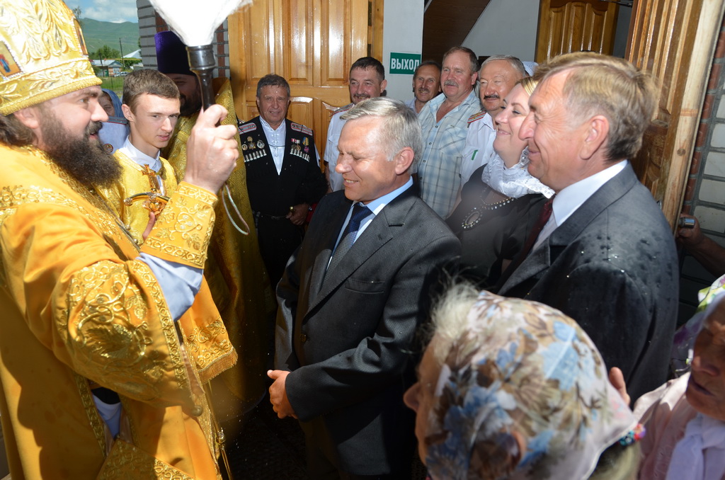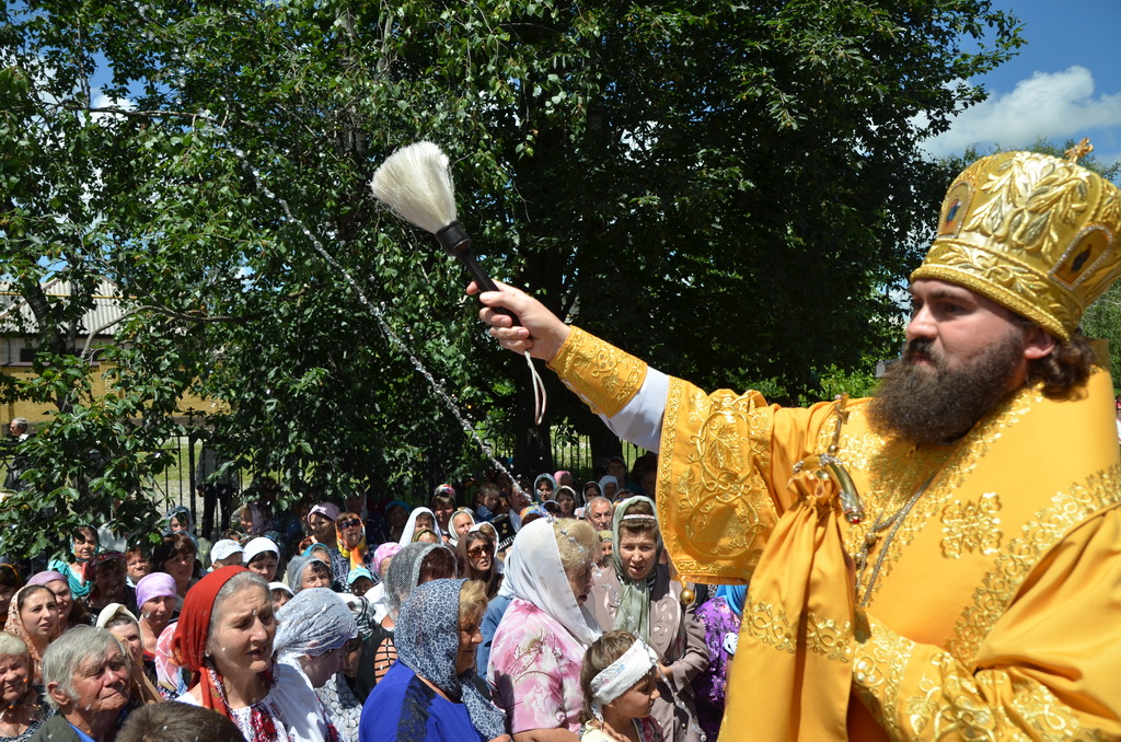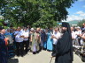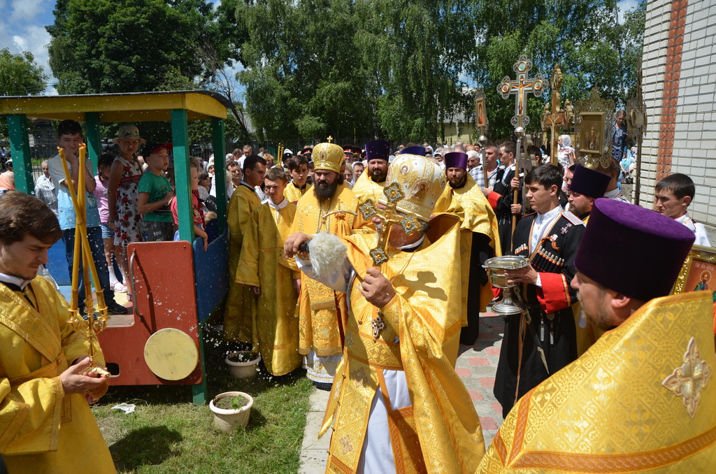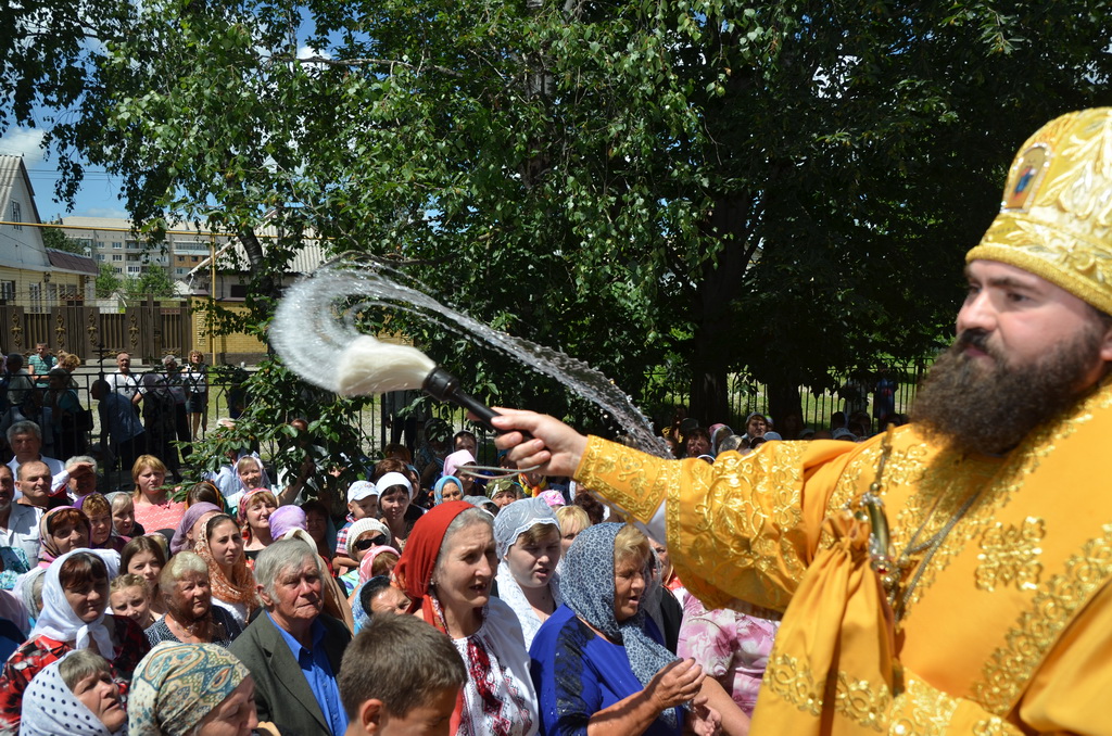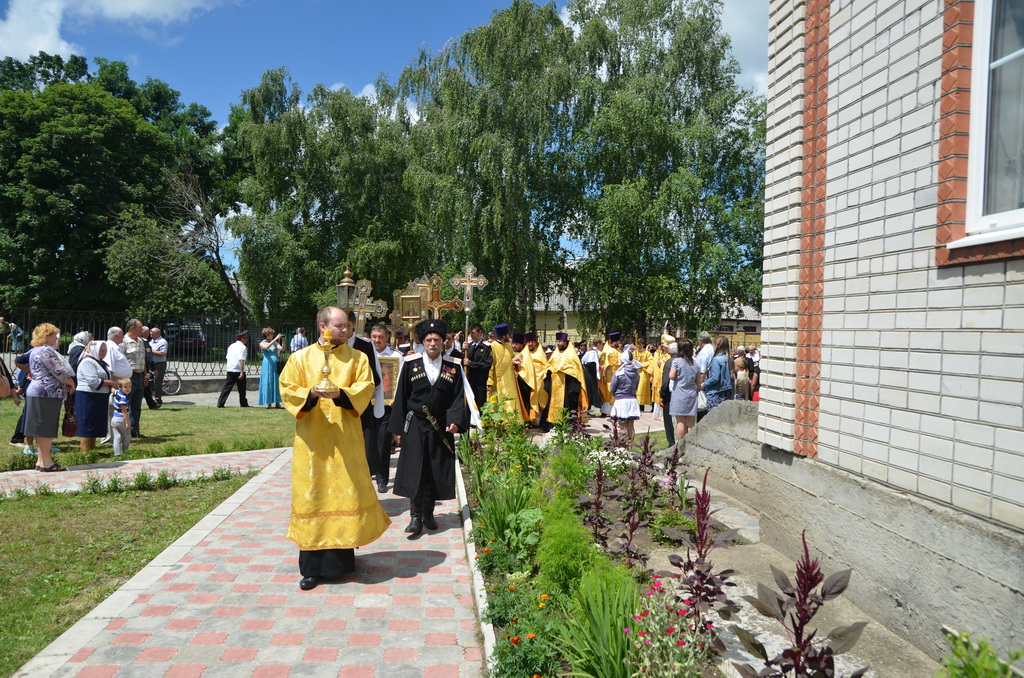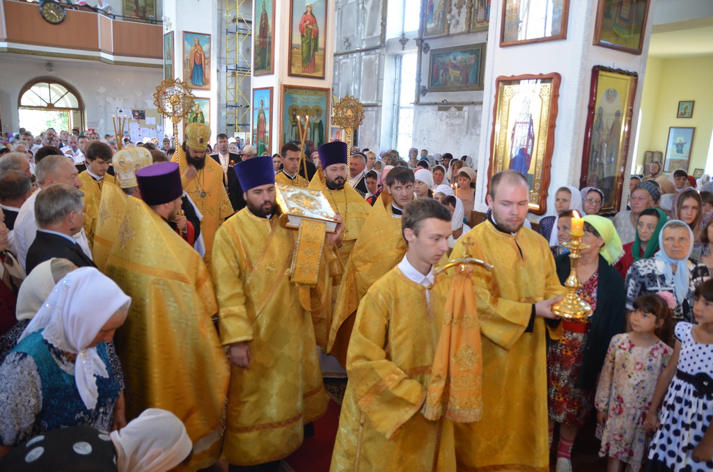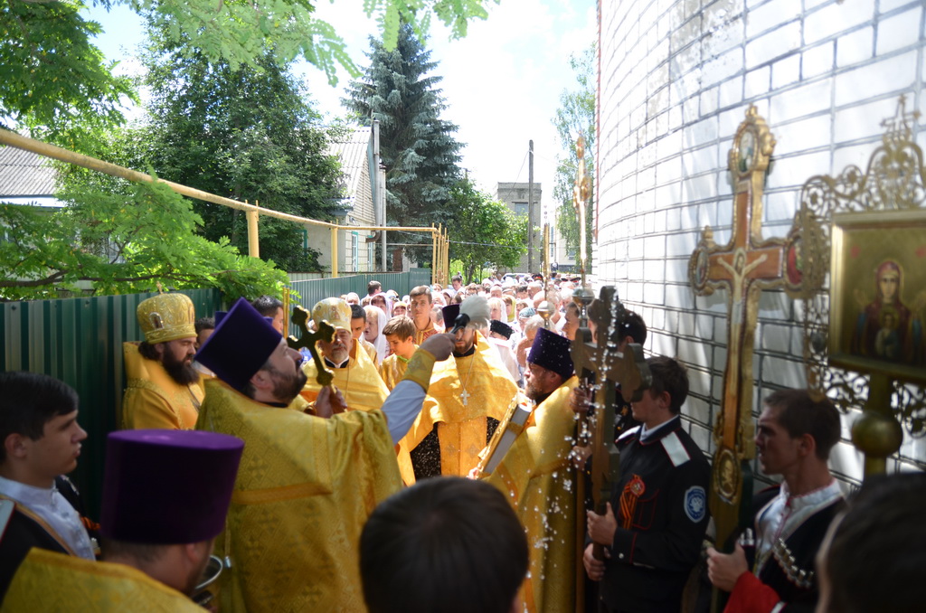 По завершении Божественной литургии состоялся уставной крестный ход во круг храма. Затем, архиепископ Феофилакт ещё раз поздравил молящихся с престольным праздником. Благословенную Патриаршую грамоту Владыка вручил Алесе Астафуровой — офицеру 34 мотострелковой бригады (горной) за труды по строительству храма на территории части. Особо потрудившихся в организации престольного праздника представителей казачества и прихожан Архипастырь удостоил Архиерейских грамот, благодарственных писем, и именных Библий. После чего, были зачитаны приветственные адреса врио Главы республики Рашида Темрезова, и Председателя Парламента республики Александра Иванова. Затем собравшихся поздравил Атаман Баталпашинского отдела Кубанского казачьего Виктор Бородкин.