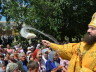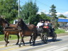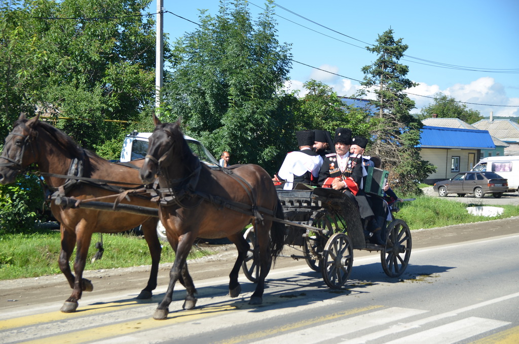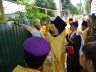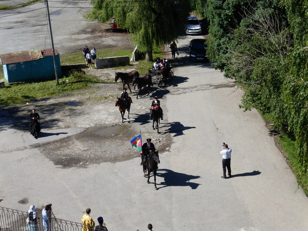 По традиции архиерей прибыл на богослужение на казачьей повозке в сопровождении конных казаков.
