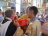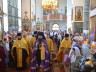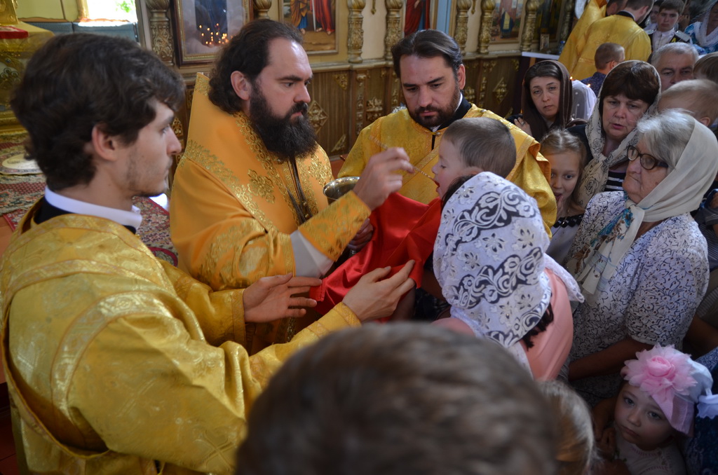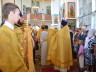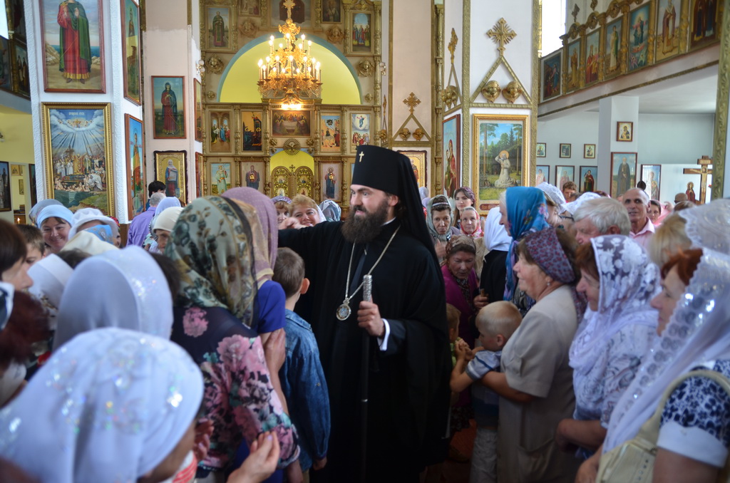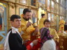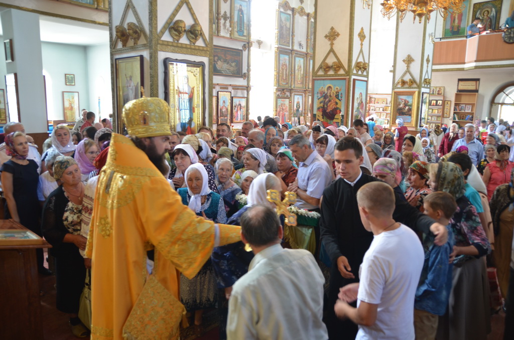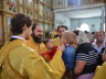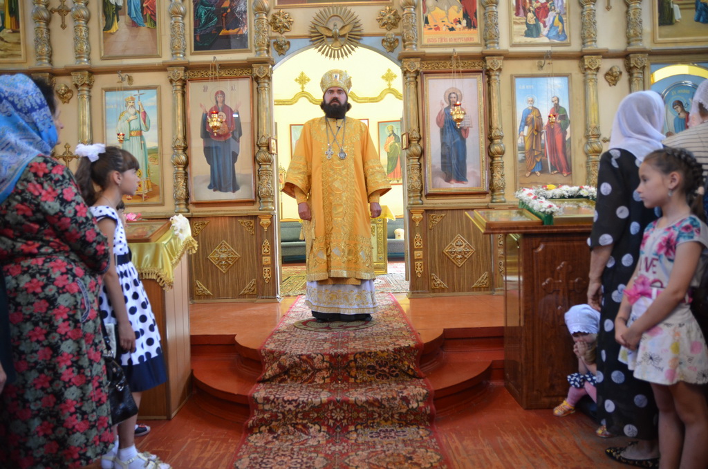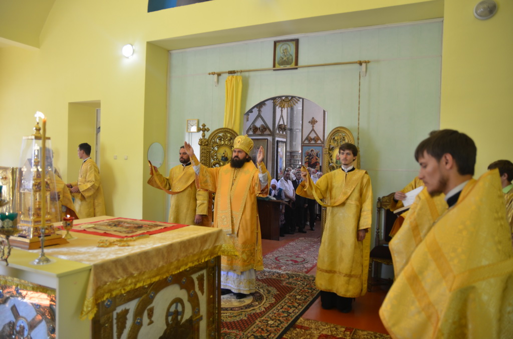На малом входе, архиерей удостоил штатного клирика храма иерея Алексея Гурина правом ношения набедренника.После чтения Евангелия, архиепископ Феофилакт обратился к верующим с проповедью. После сугубой ектении Архиерей вознёс молитву о мире на Украине и Ближнем Востоке.