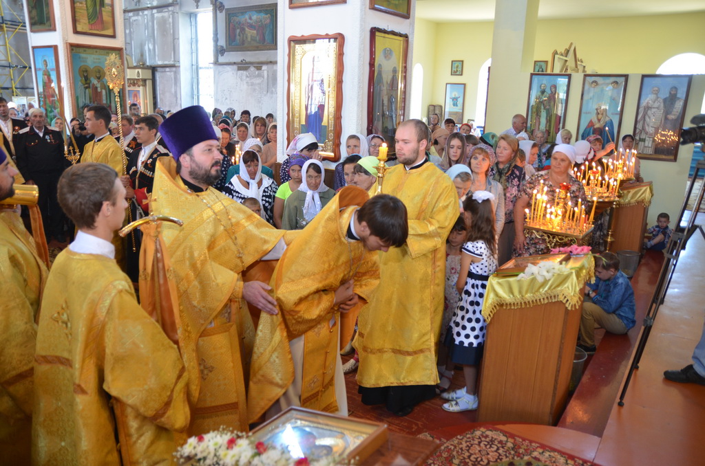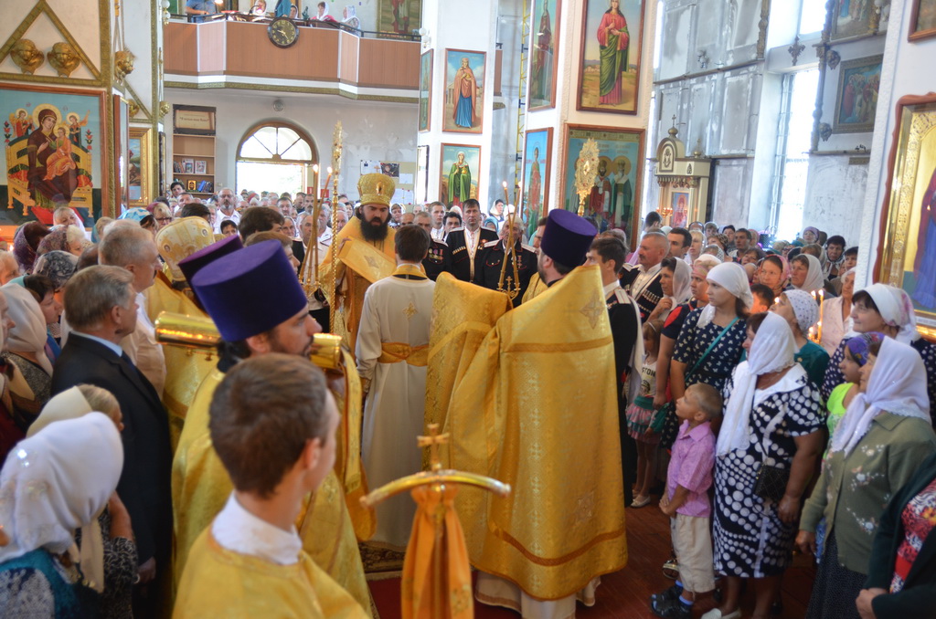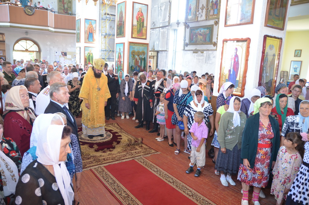 Архиерею сослужили: настоятель храма протоиерей Евгений Субтельный, наместник Александро-Афонской Зелекнчукской пустыни архимандрит Антоний (Данилов) духовенство Южного Карачаево — Черкесского церковного округа. Диаконский чин возглавил протодиакон Дмитрий Куба. Радость престольного торжества вместе с жителями станицы прибыли разделить многочисленные паломники из Ставропольского края, соседних поселений, а так же представители Правительства, Парламента КЧР, администрации и казаки.