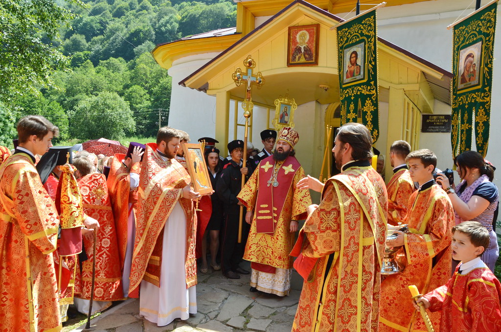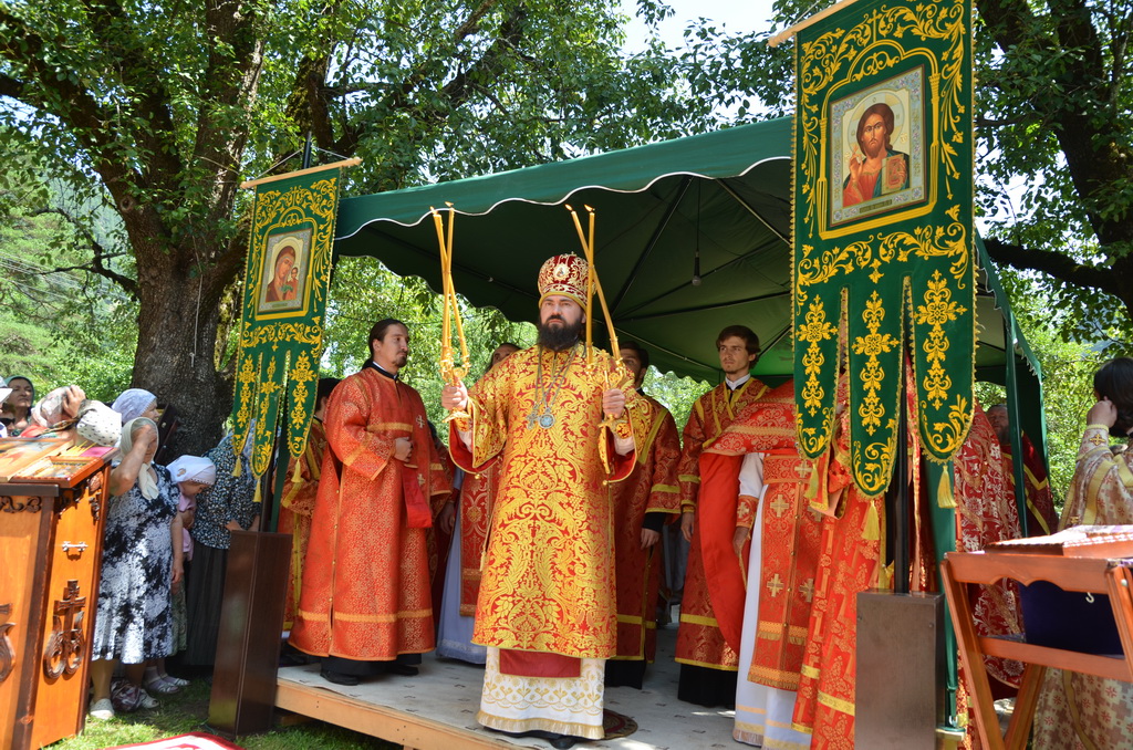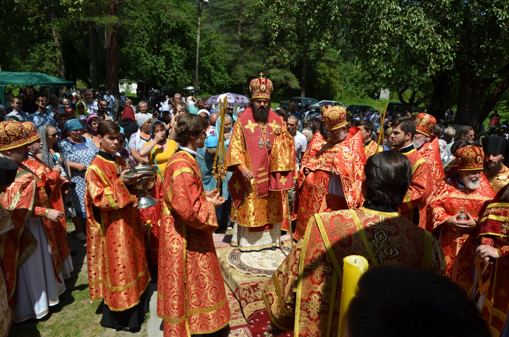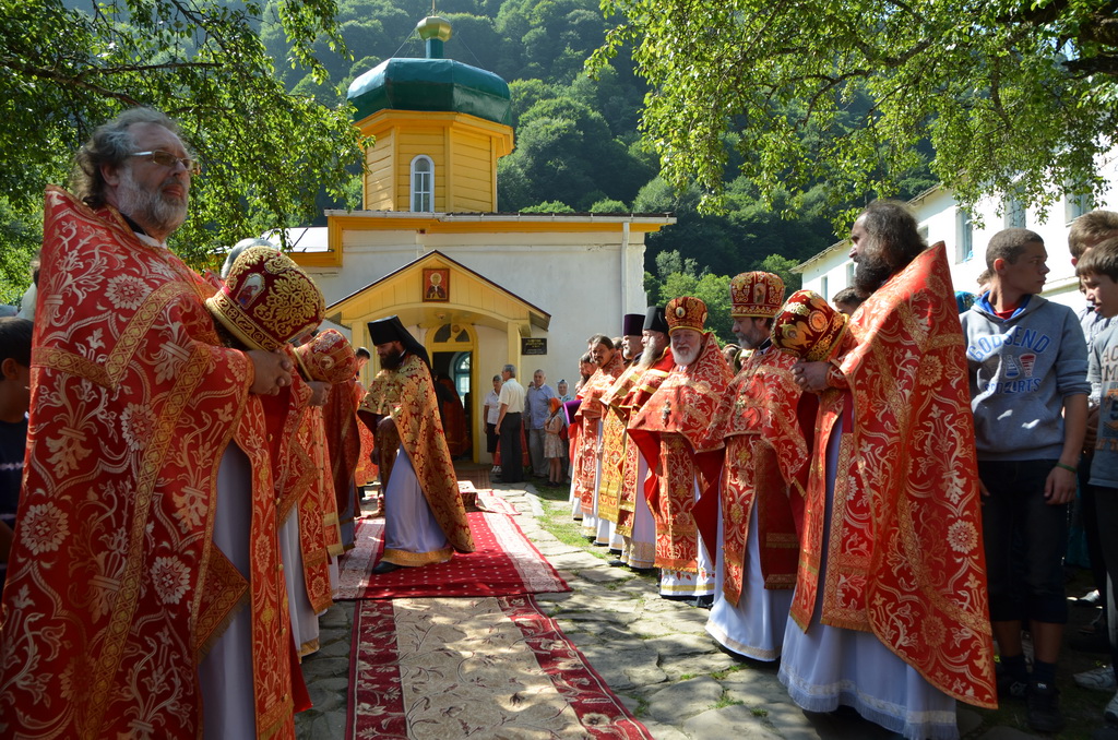 Архиерею сослужили: настоятель Александро — Афонской Зеленчукской пустыни Архимандрит Антоний (Данилов), руководитель административного секретариата Пятигорской епархии иерей Илья Яковенко, наместник Михаило — Афонской Закубанской общежительной мужской пустыни игумен Герасим (Буняев), благочинный Второафонского монастыря иеремонах Елеферий (Казаков), а также благочинные церковных округов и духовенство епархии. Диаконский чин возглавил протодиакон Димитрий Куба. Разделить молитву с Архипастырем, прибыли представители администрации Зеленчукского района, казаки, настоятельницы женских монастырей епархии с сестрами, многочисленные паломники не только с Северного Кавказа, но и из других регионов. Также, за богослужением молились участники Форума «Маруха 2016»