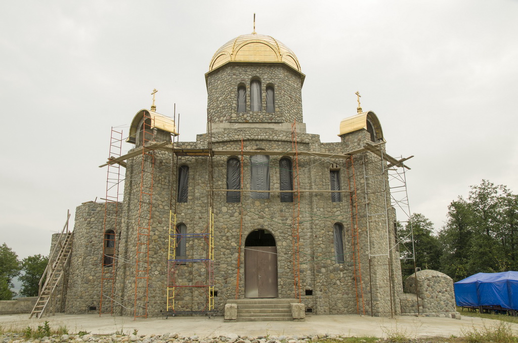 Храм имеет ту же форму и пропорции, что и древние аланские храмы нашей республики. Он однокупольный и построен в форме равноконечного креста. Стены храма вылиты из бетона, а сверху обложены камнем, собранным в русле реки Кяфарь.