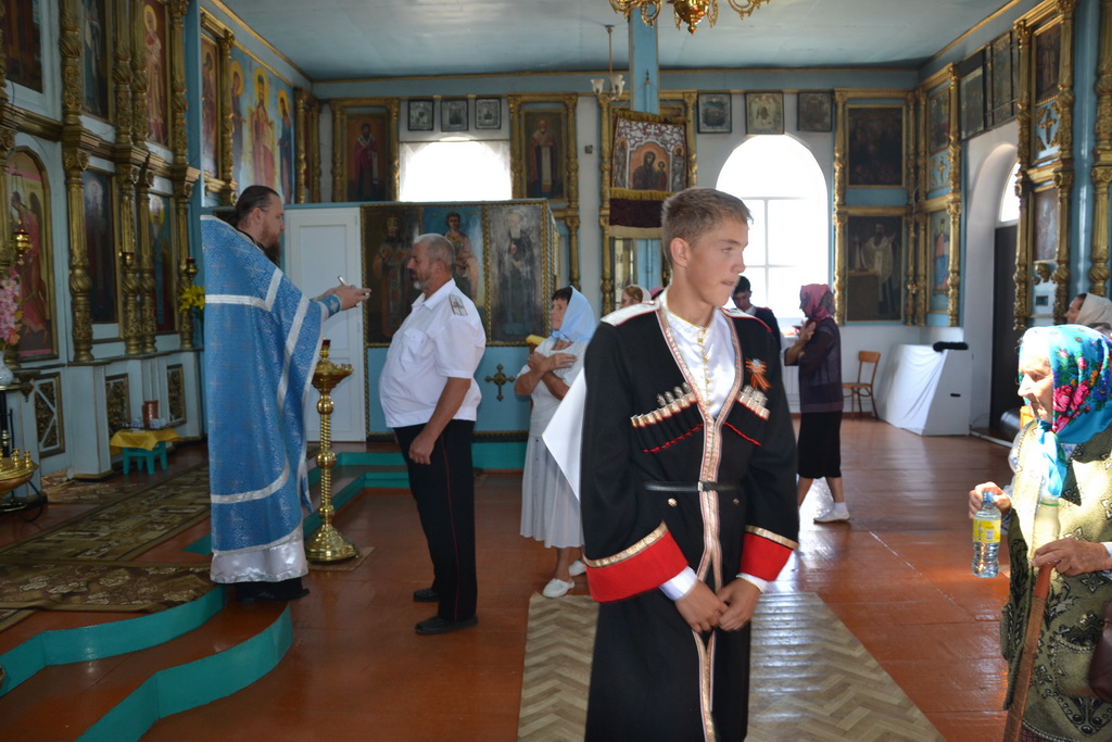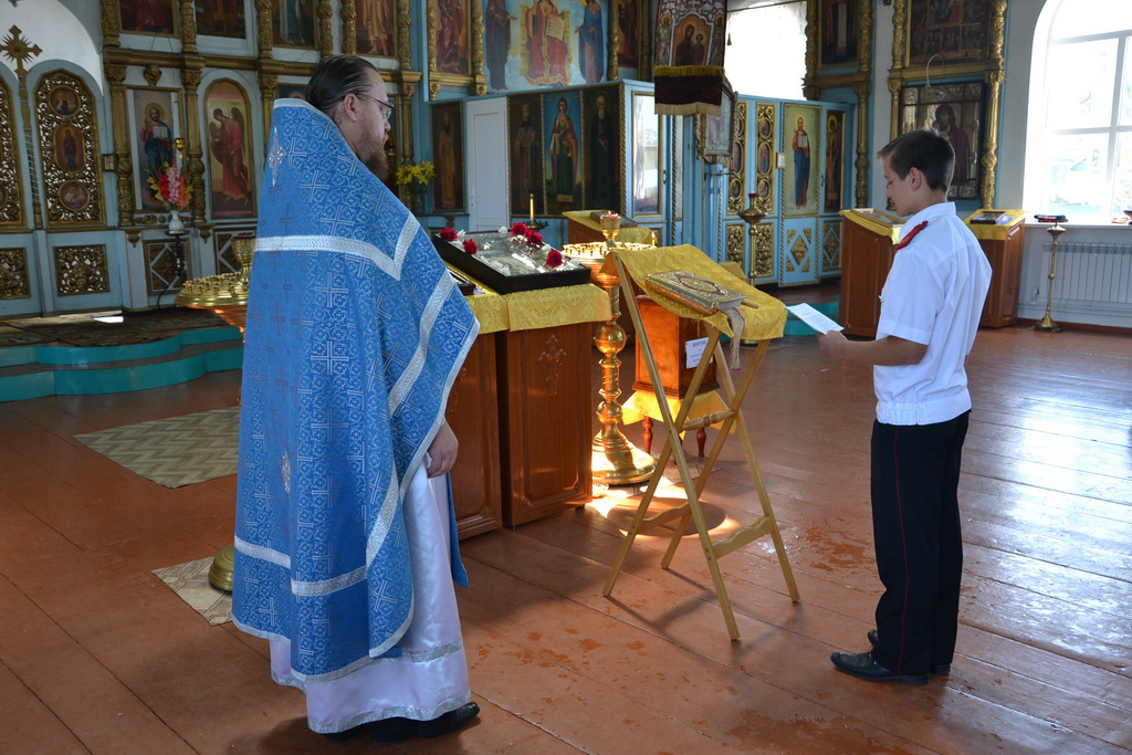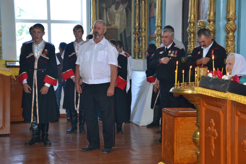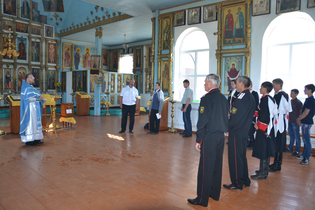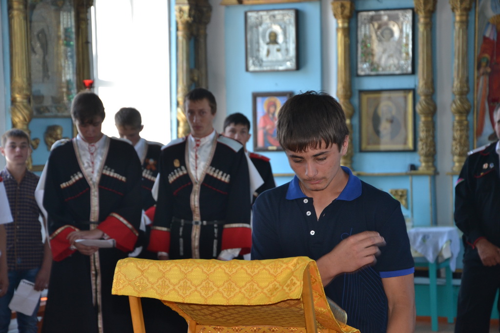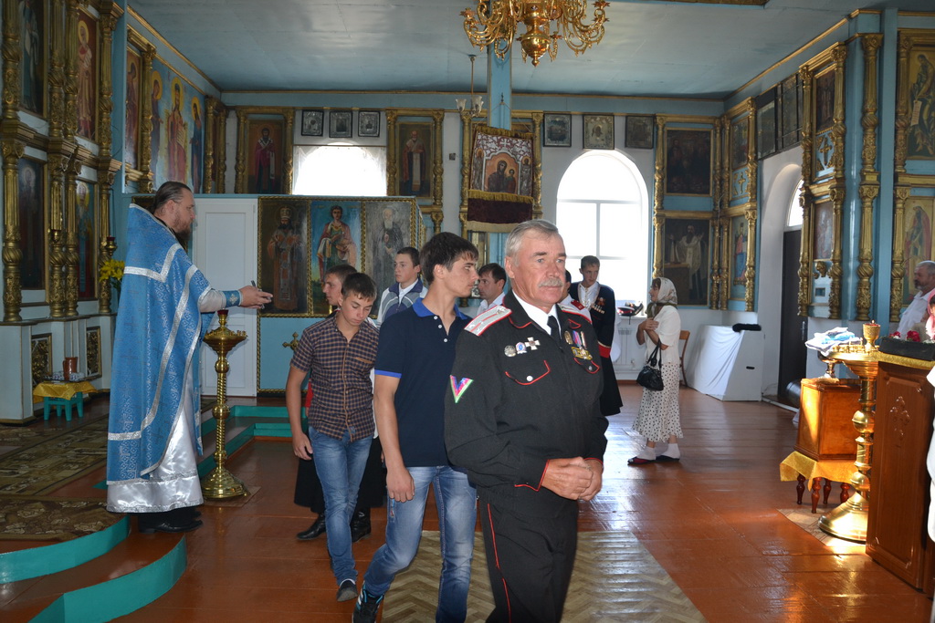 После торжественной клятвы, засвидетельствованной целованием святых Креста и Евангелия, казаков поздравили настоятель храма и станичный атаман Иван Петрович Пустовой.